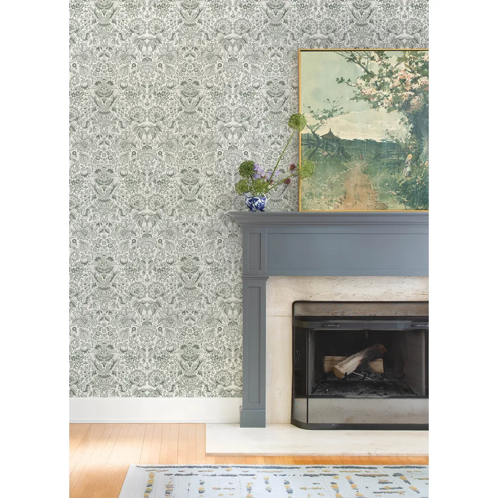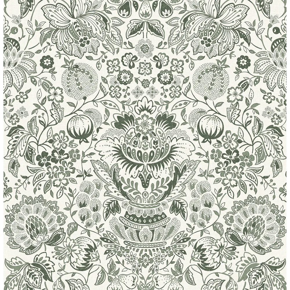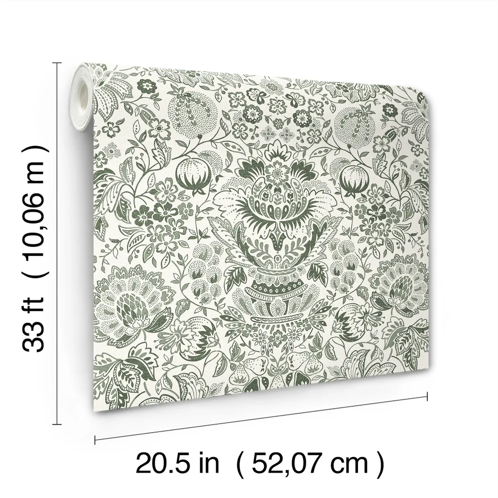 | A-Street Prints Haberdashery | Blanche Dark Green Floral Damask Wallpaper Match: Straight Page: 29 Repeat: 20.9 Washable Roll is 20.5 Inches in width and 33 Feet in Length With About 56.4 square feet Coverage Unpasted Strippable Paste the Wall Colors: Greens Modern Damask Botanical |