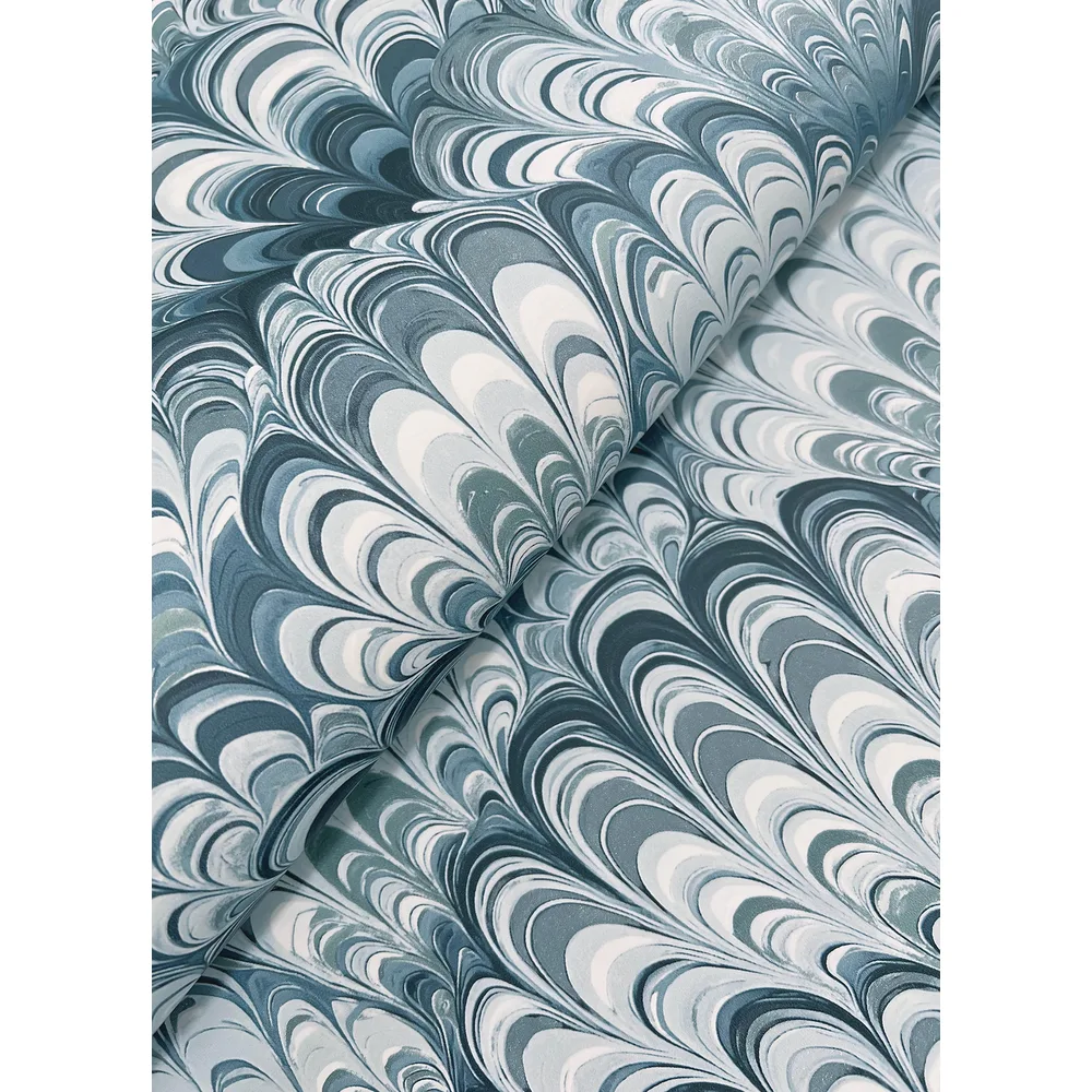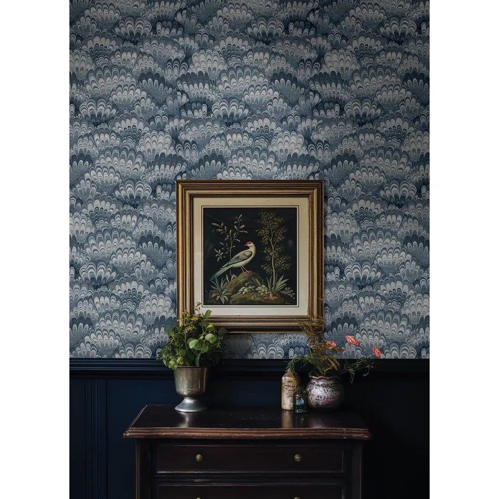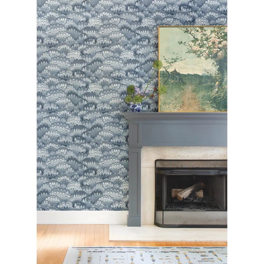 A-Street Prints Haberdashery | Octavia Blue Marbled Ink Wallpaper