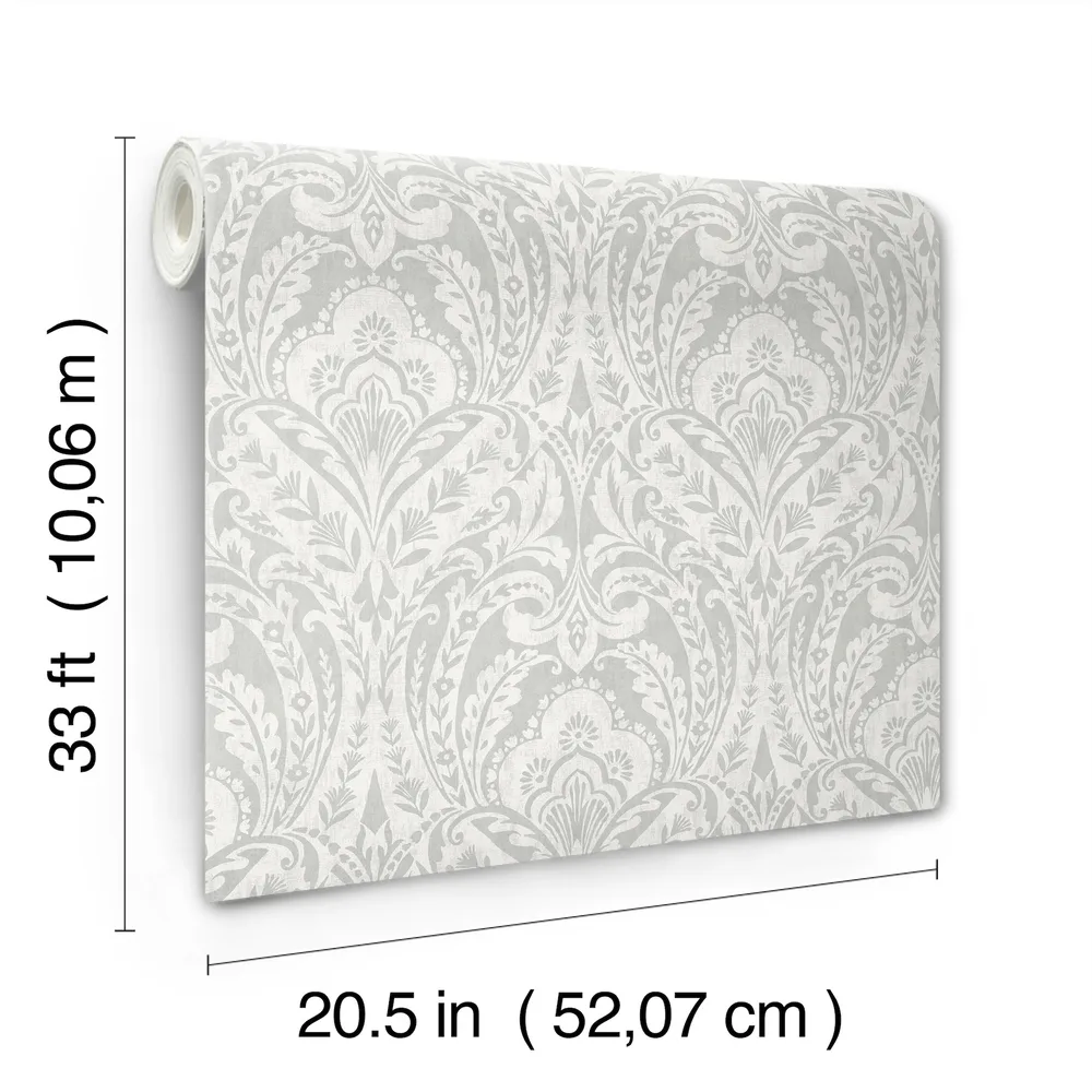 | A-Street Prints Haberdashery | Berkshire Grey Damask Wallpaper Match: Straight Page: 58 Repeat: 20.9 Washable Roll is 20.5 Inches in width and 33 Feet in Length With About 56.4 square feet Coverage Unpasted Strippable Paste the Wall Colors: Greys Traditional Damask Graphics |
