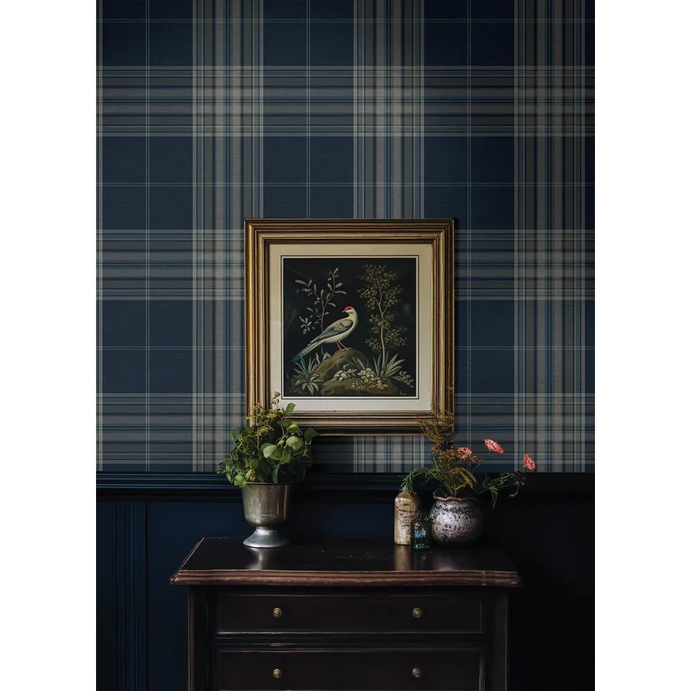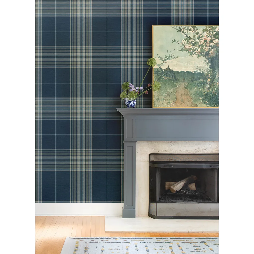 A-Street Prints Haberdashery | Westley Navy Plaid Wallpaper