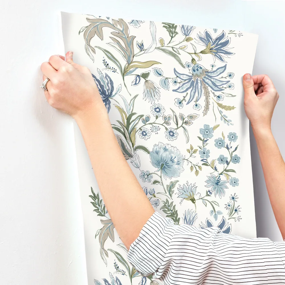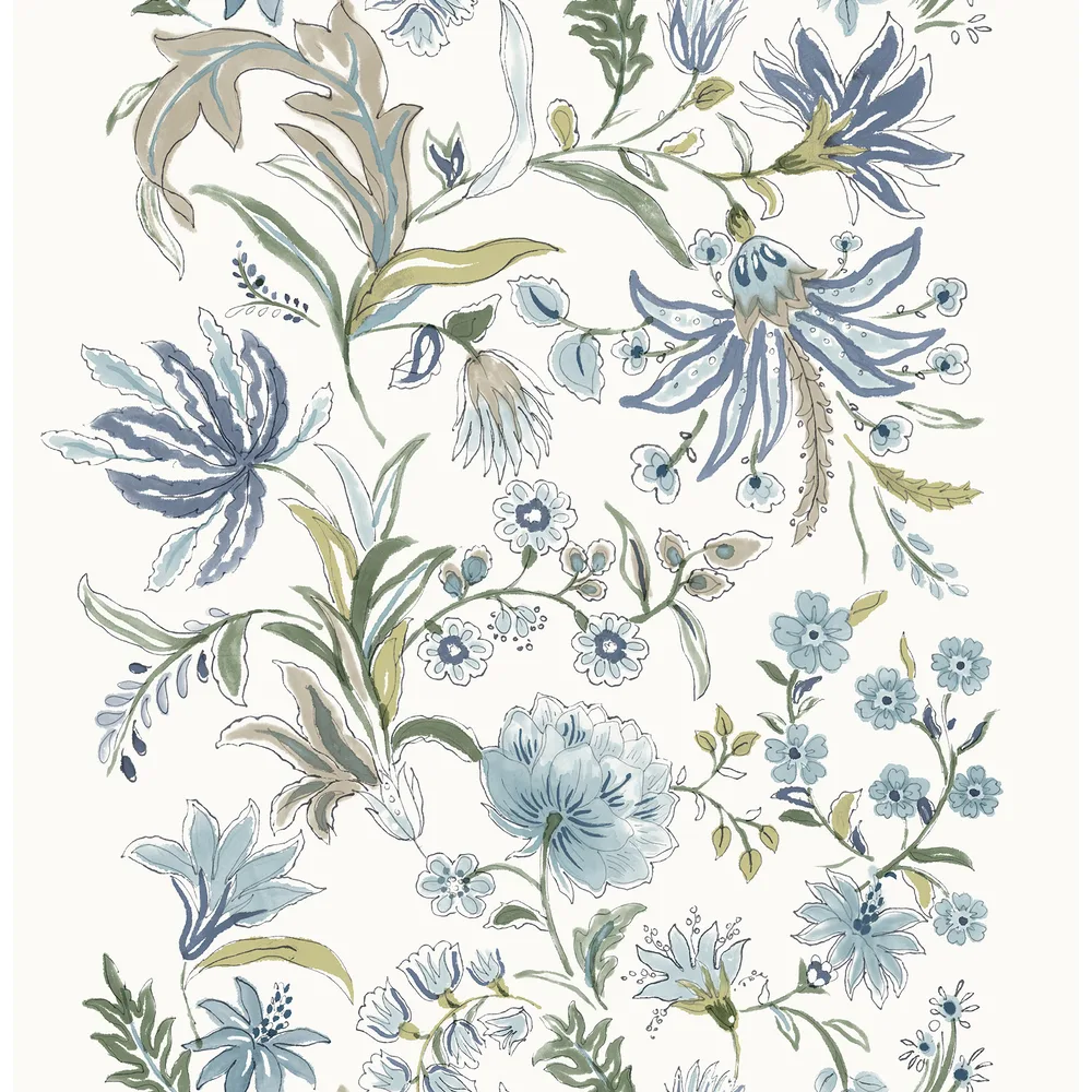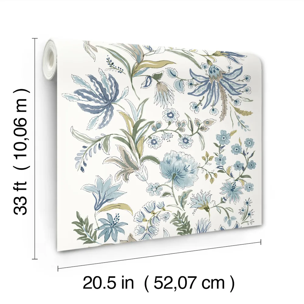 | A-Street Prints Haberdashery | Teonna Blue Floral Stripe Wallpaper Match: Drop Page: 66 Repeat: 20.9 Washable Roll is 20.5 Inches in width and 33 Feet in Length With About 56.4 square feet Coverage Unpasted Strippable Paste the Wall Colors: Blues Modern Flowers Botanical |