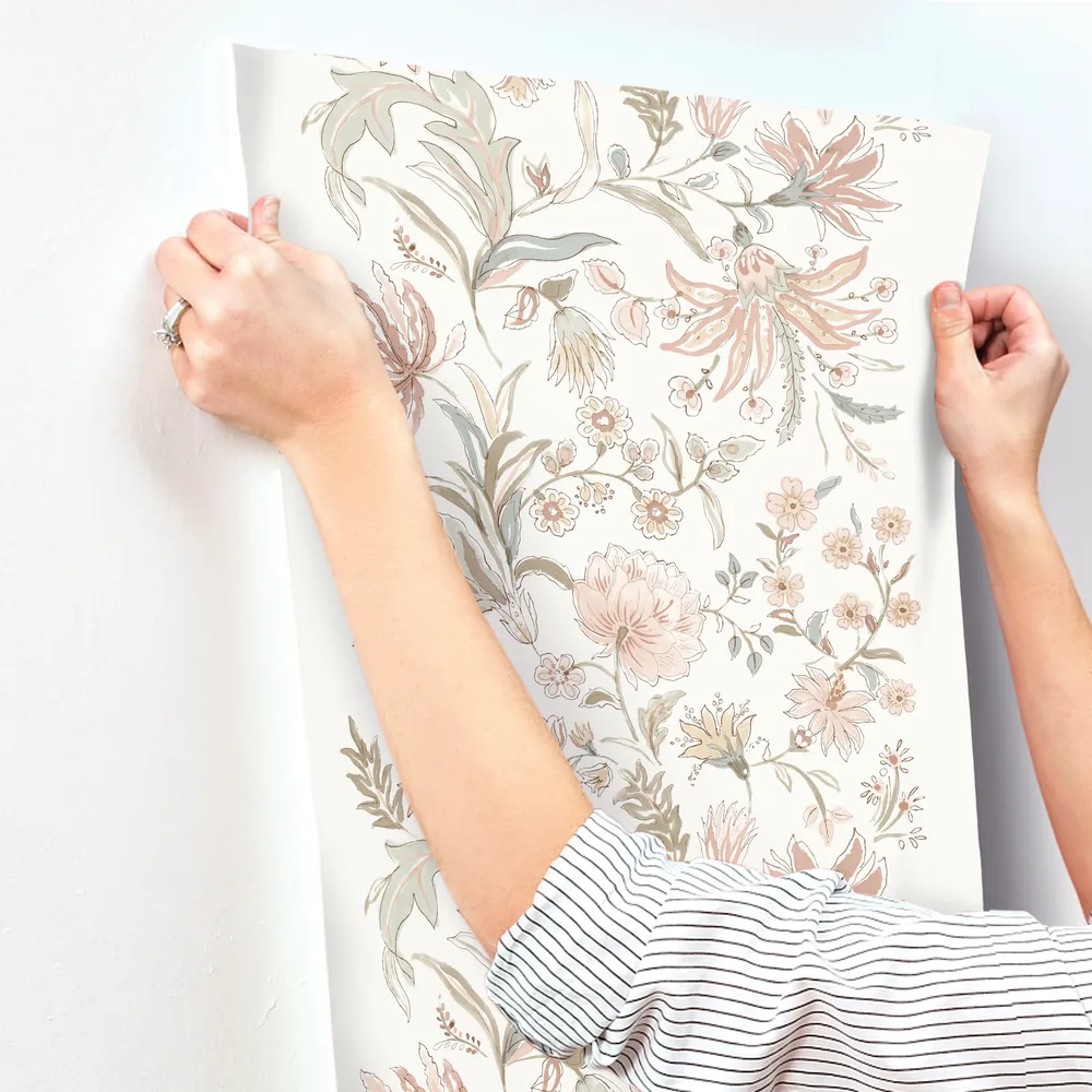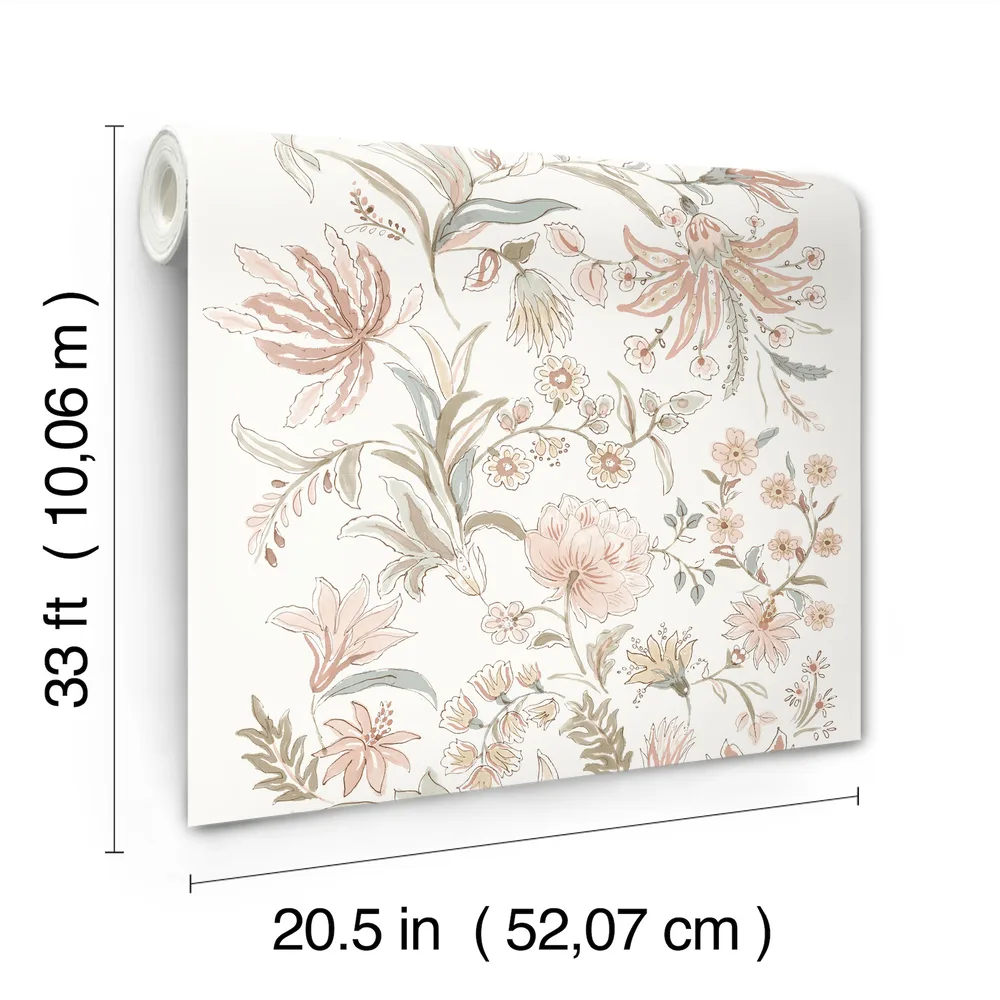 | A-Street Prints Haberdashery | Teonna Light Pink Floral Stripe Wallpaper Match: Drop Page: 65 Repeat: 20.9 Washable Roll is 20.5 Inches in width and 33 Feet in Length With About 56.4 square feet Coverage Unpasted Strippable Paste the Wall Colors: Pinks Modern Flowers Botanical |