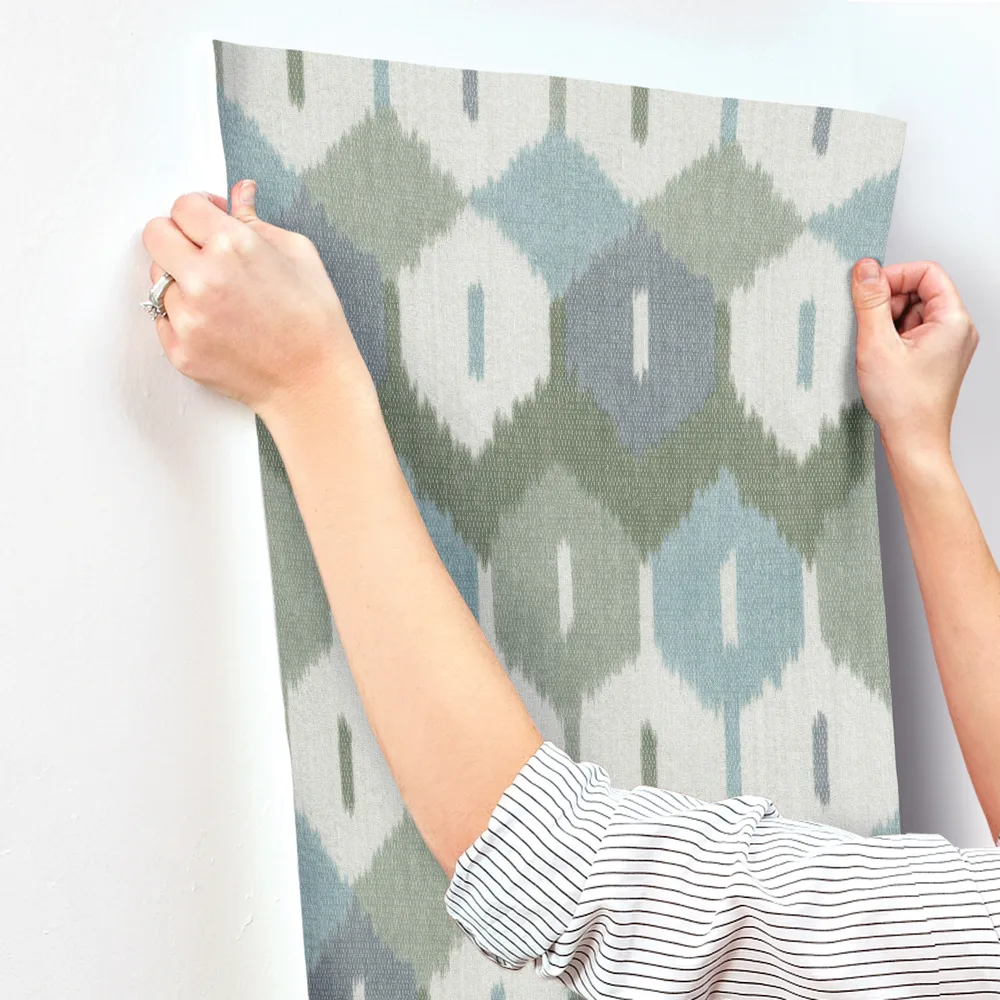 | A-Street Prints Haberdashery | Abilene Sea Green Ikat Wallpaper Match: Straight Page: 49 Repeat: 20.9 Washable Roll is 20.5 Inches in width and 33 Feet in Length With About 56.4 square feet Coverage Unpasted Strippable Paste the Wall Colors: Greens Bohemian Geometrics Graphics |