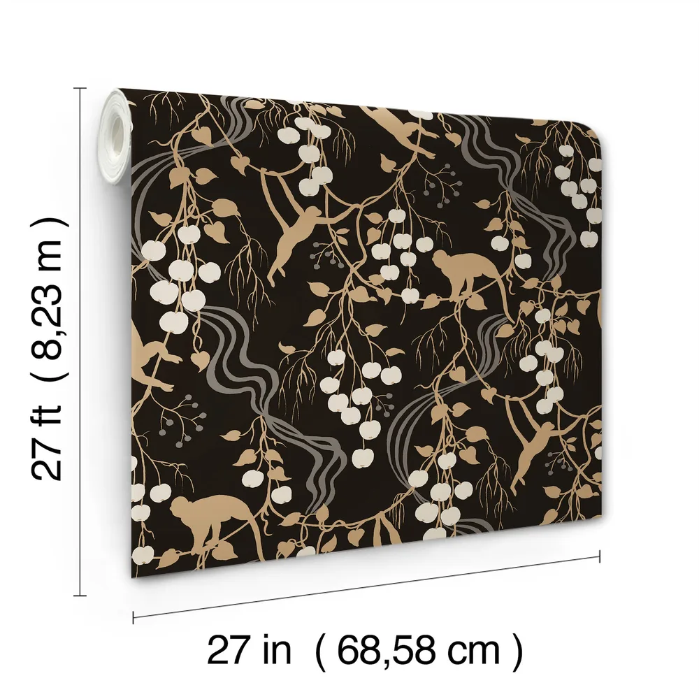 | A-Street Prints Haberdashery | Linden Black Jungle Canopy Wallpaper Match: Straight Page: 21 Repeat: 25.25 Washable Roll is 27 Inches in width and 27 Feet in Length With About 60.8 square feet Coverage Unpasted Strippable Paste the Wall Colors: Blacks Eclectic Animals Animals |