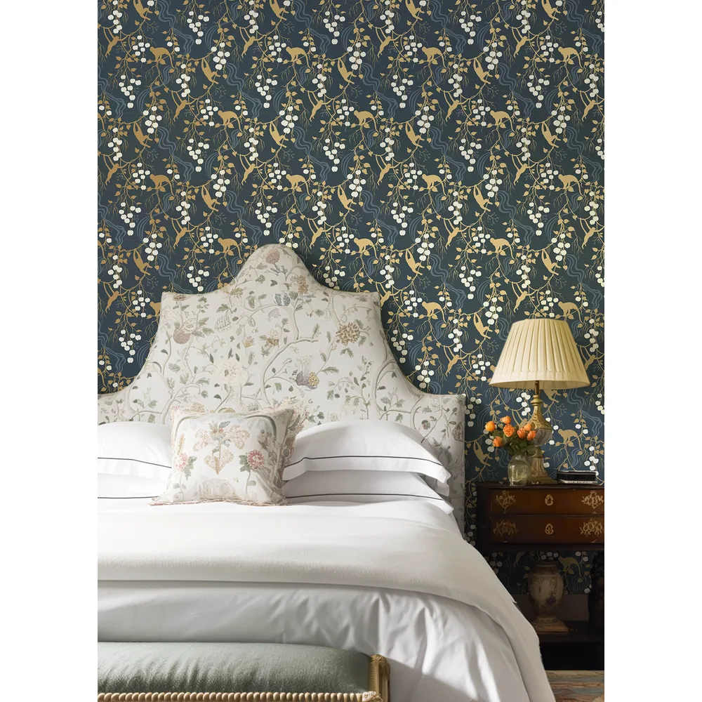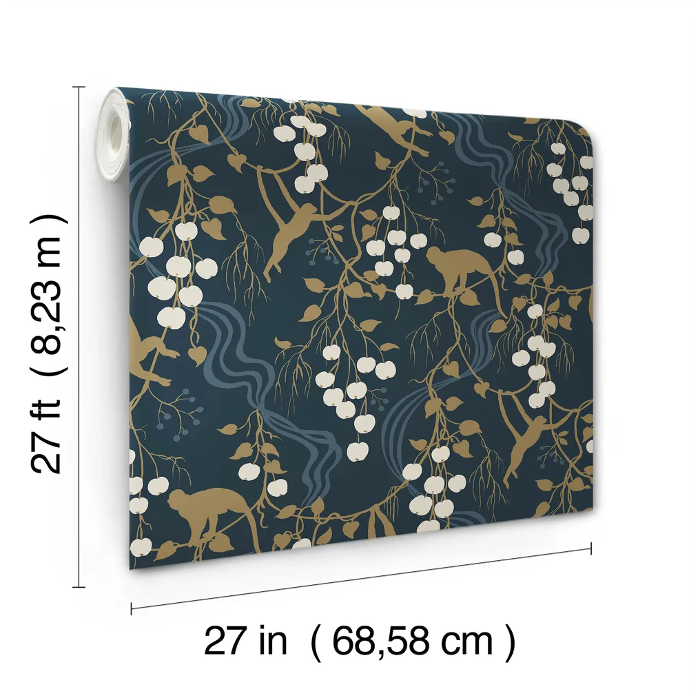 | A-Street Prints Haberdashery | Linden Navy Jungle Canopy Wallpaper Match: Straight Page: 25 Repeat: 25.25 Washable Roll is 27 Inches in width and 27 Feet in Length With About 60.8 square feet Coverage Unpasted Strippable Paste the Wall Colors: Blues Eclectic Animals Animals |