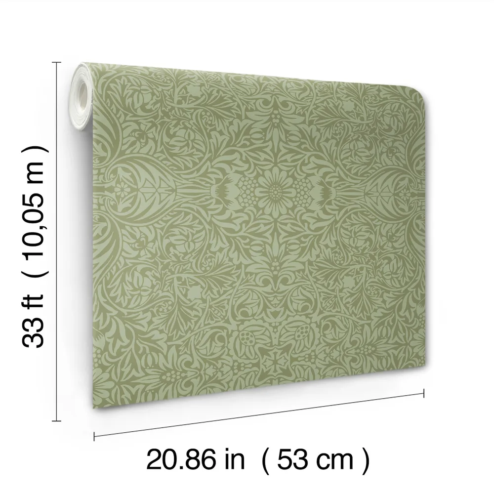 | A-Street Prints Hidden Treasures 2 | Ceiling Green Intricate Floral Wallpaper Match: Straight Page: 48 Repeat: 20.9 Washable Roll is 20.9 Inches in width and 33 Feet in Length With About 57.5 square feet Coverage Unpasted Strippable Paste the Wall Colors: Greens Scandinavian Flowers Botanical |