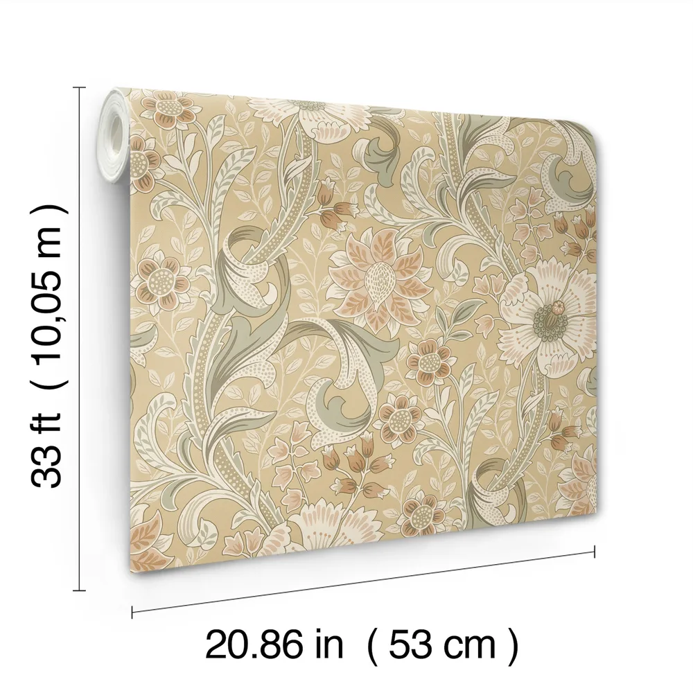 | Chesapeake Kitchen & Bath | Liora Butter Floral Trail Wallpaper Match: Straight Page: 42 Repeat: 20.87 Washable Roll is 20.9 Inches in width and 33 Feet in Length With About 57.5 square feet Coverage Unpasted Strippable Paste the Wall Colors: Yellows Farmhouse Flowers Botanical |