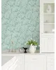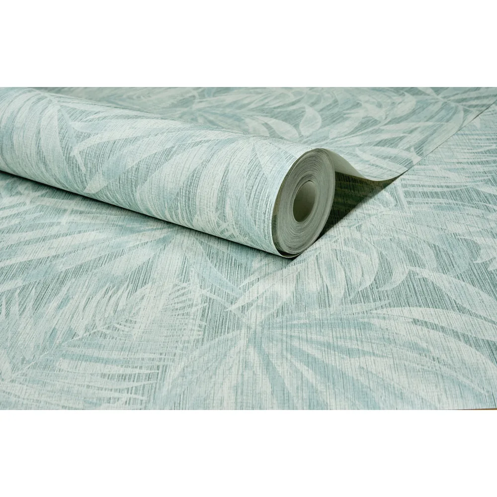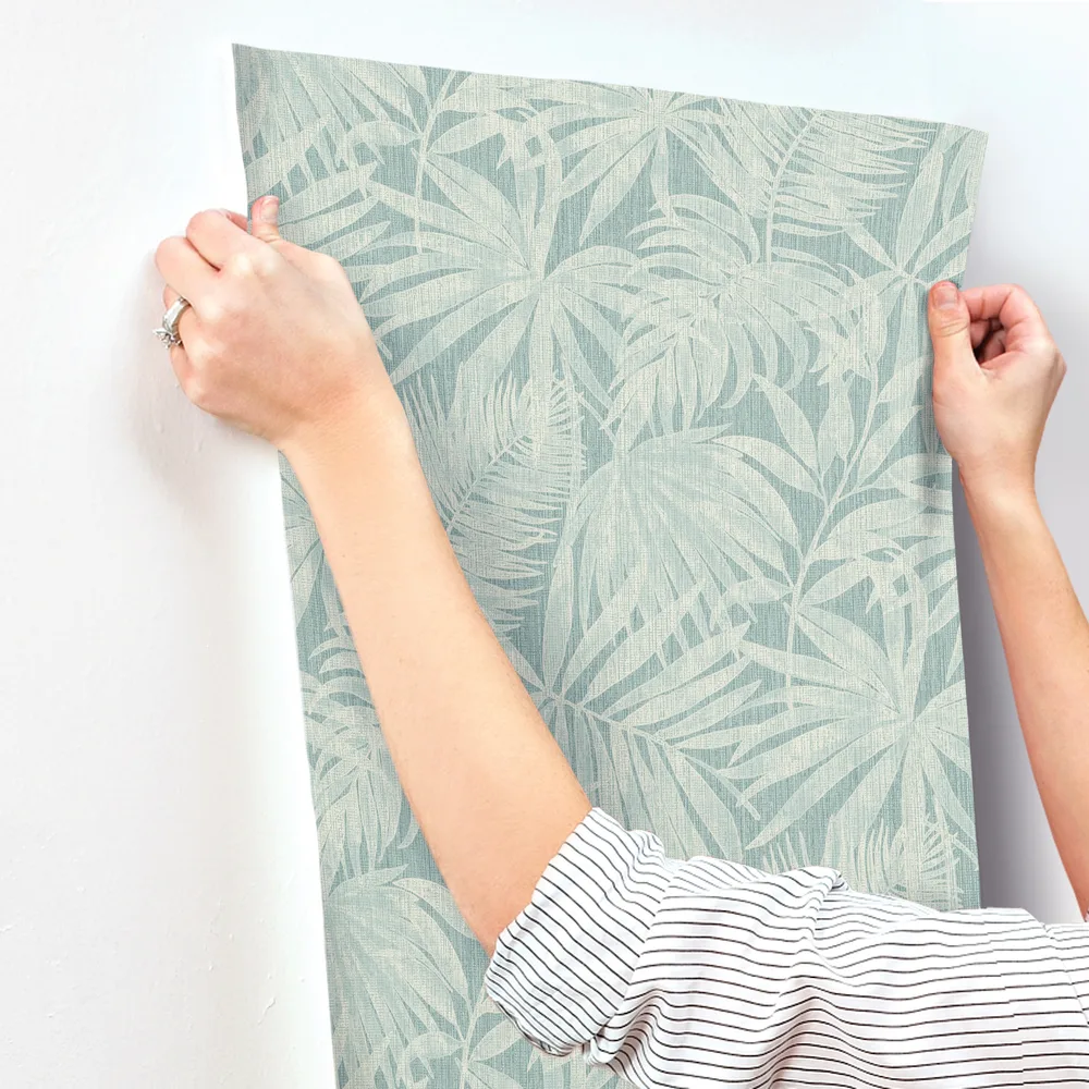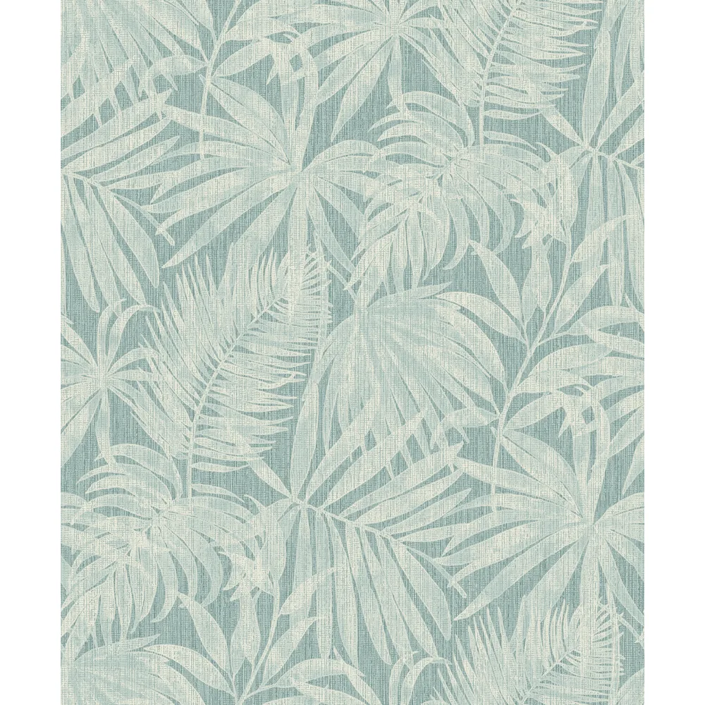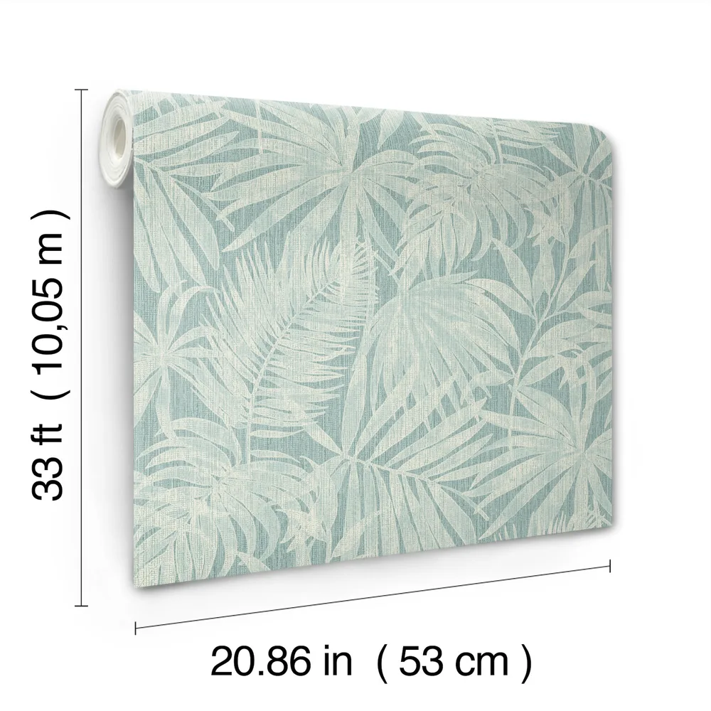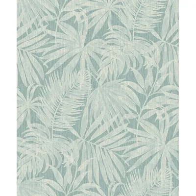 | Chesapeake Kitchen & Bath | Sonny Light Blue Fronds Wallpaper Match: Straight Page: 40 Repeat: 25.2 Washable Roll is 20.9 Inches in width and 33 Feet in Length With About 57.5 square feet Coverage Unpasted Strippable Paste the Wall Colors: Blues Tropical Leaves Botanical |