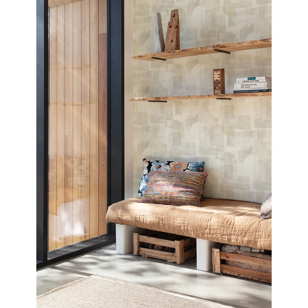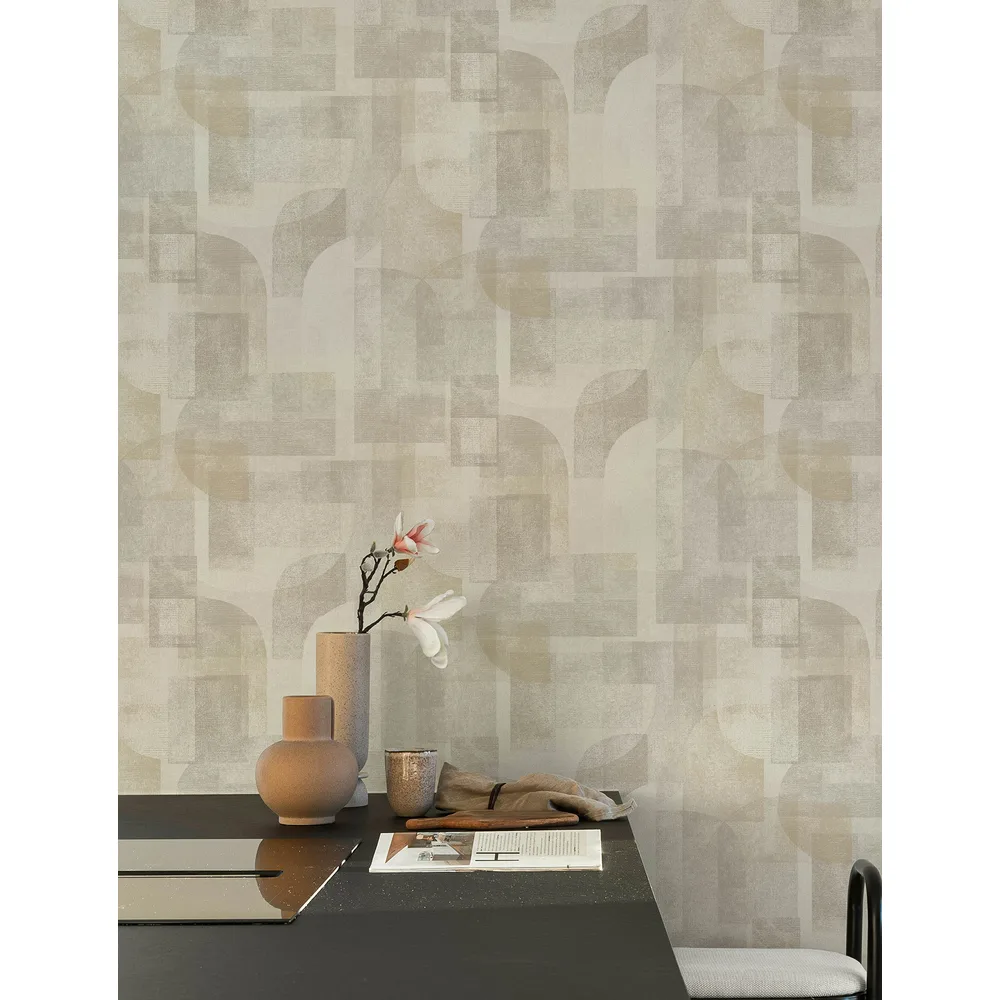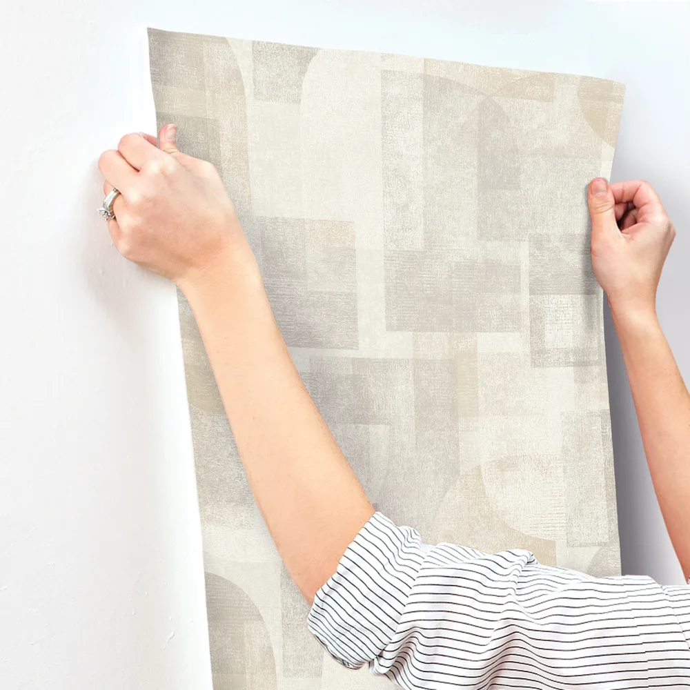 Chesapeake Kitchen & Bath | Cassandra Taupe Block Geometric Wallpaper