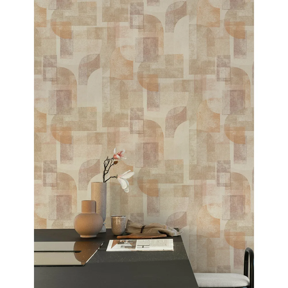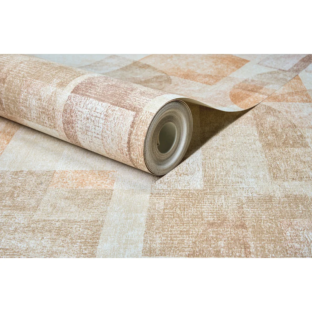 | Chesapeake Kitchen & Bath | Cassandra Rust Block Geometric Wallpaper Match: Drop Page: 33 Repeat: 25.2 Washable Roll is 20.9 Inches in width and 33 Feet in Length With About 57.5 square feet Coverage Unpasted Strippable Paste the Wall Colors: Reds Retro Geometrics Abstract |