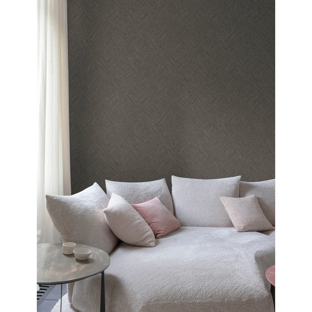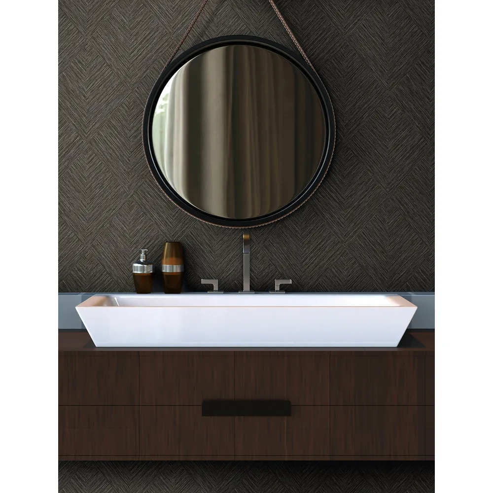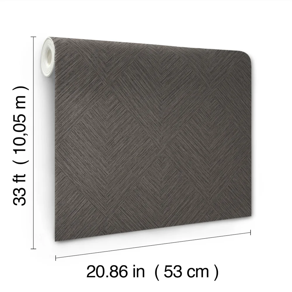 | Chesapeake Kitchen & Bath | Hollis Charcoal Textured Diamond Wallpaper Match: Drop Page: 20 Repeat: 25.2 Scrubbable Roll is 20.9 Inches in width and 33 Feet in Length With About 57.5 square feet Coverage Unpasted Strippable Paste the Wall Colors: Blacks Kitchen & Bath Geometrics Graphics |