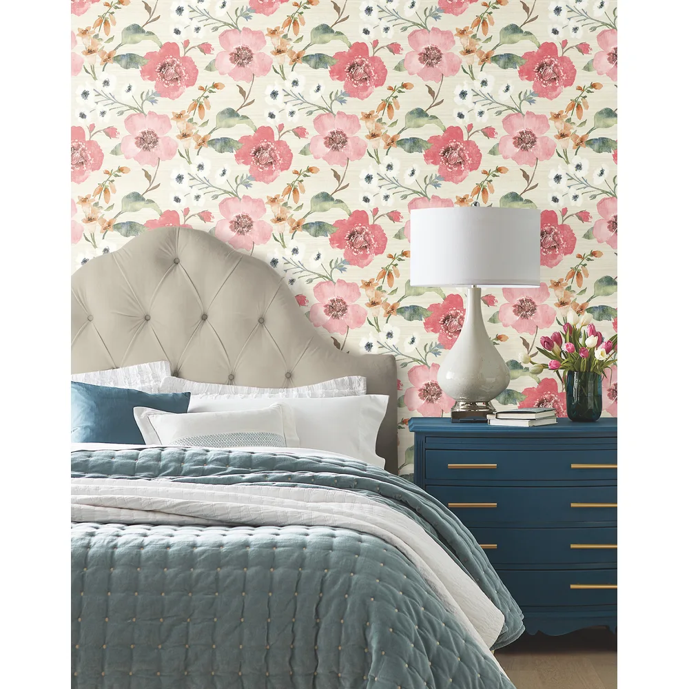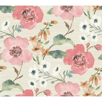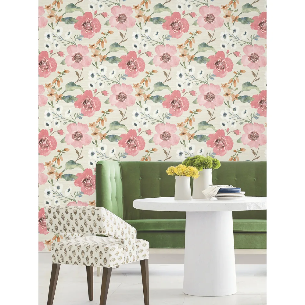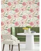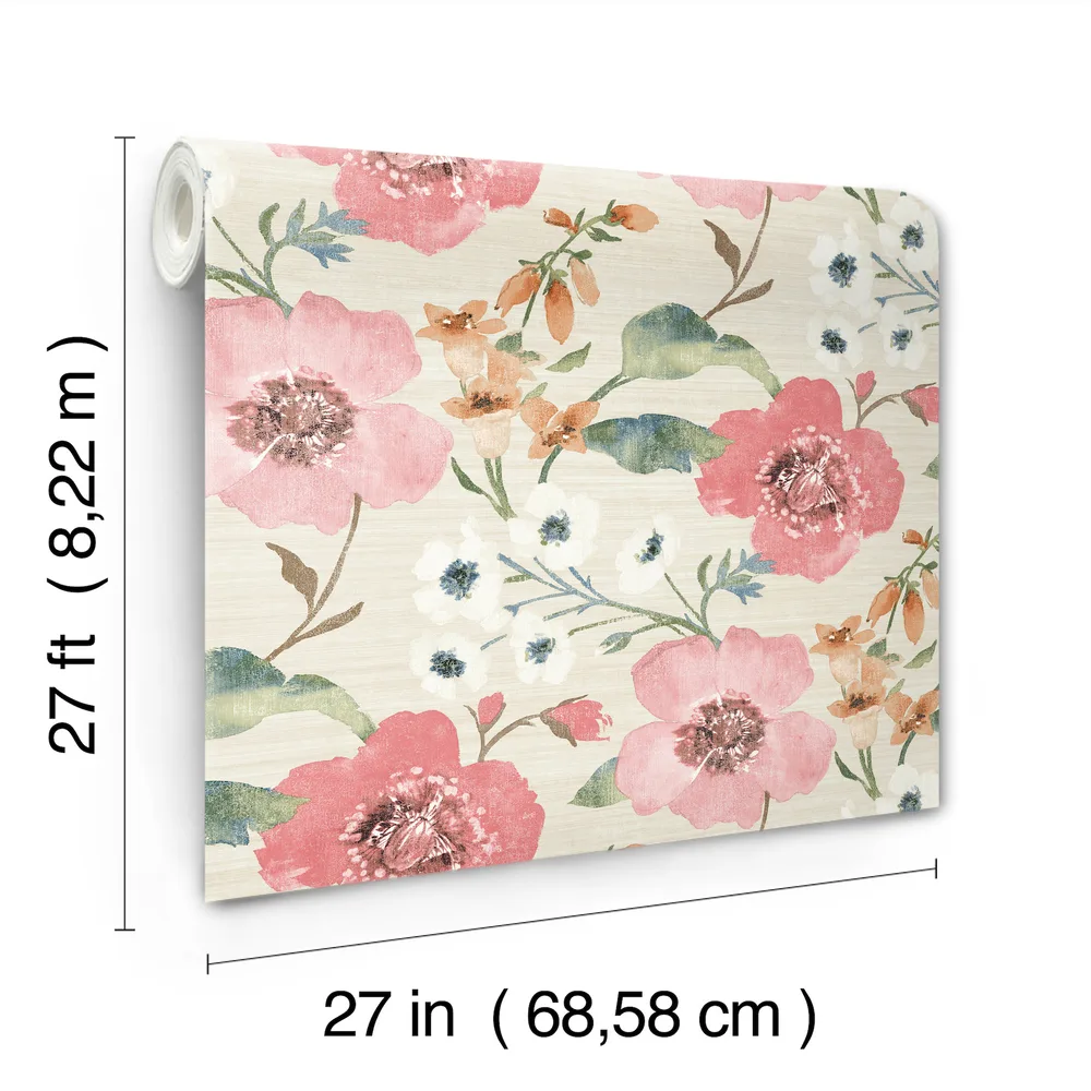 | Antonina Vella Layered Luxe | Evelyn Pink Floral Wallpaper Match: Straight Page: 1 Repeat: 24 Washable Roll is 27 Inches in width and 27 Feet in Length With About 60.8 square feet Coverage Unpasted Strippable Paste the Wall Colors: Pinks Country Flowers Botanical |