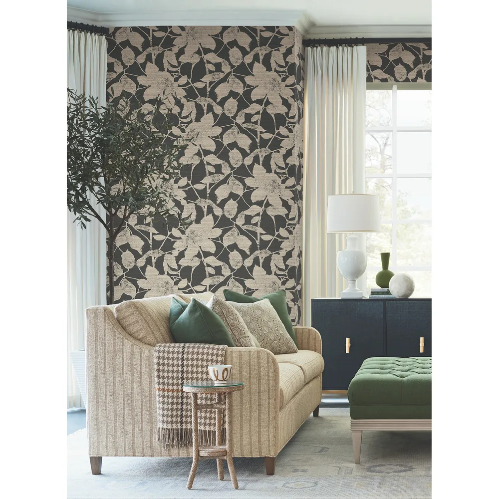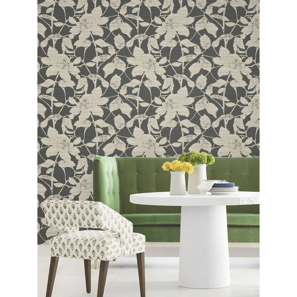 | Antonina Vella Layered Luxe | Solange Black Botanical Wallpaper Match: Straight Page: 18 Repeat: 25.25 Washable Roll is 27 Inches in width and 27 Feet in Length With About 60.8 square feet Coverage Unpasted Strippable Paste the Wall Colors: Blacks Traditional Flowers Botanical |