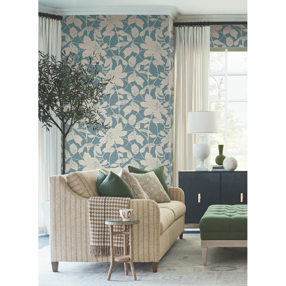 | Antonina Vella Layered Luxe | Solange Teal Botanical Wallpaper Match: Straight Page: 17 Repeat: 25.25 Washable Roll is 27 Inches in width and 27 Feet in Length With About 60.8 square feet Coverage Unpasted Strippable Paste the Wall Colors: Blues Traditional Flowers Botanical |
