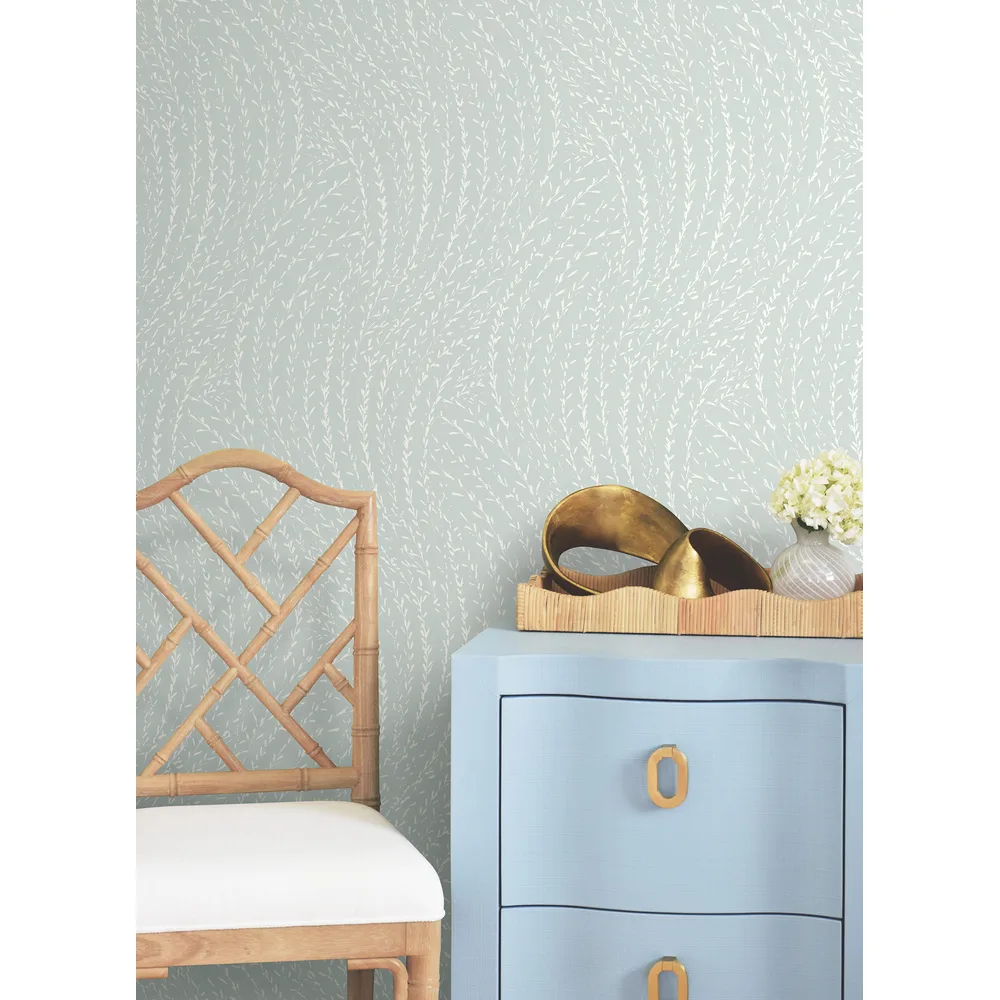 | Antonina Vella Layered Luxe | Willow Song Light Blue Botanical Wallpaper Match: Straight Page: 21 Repeat: 25.25 Washable Roll is 27 Inches in width and 27 Feet in Length With About 60.8 square feet Coverage Unpasted Strippable Paste the Wall Colors: Blues Traditional Botanical Botanical |