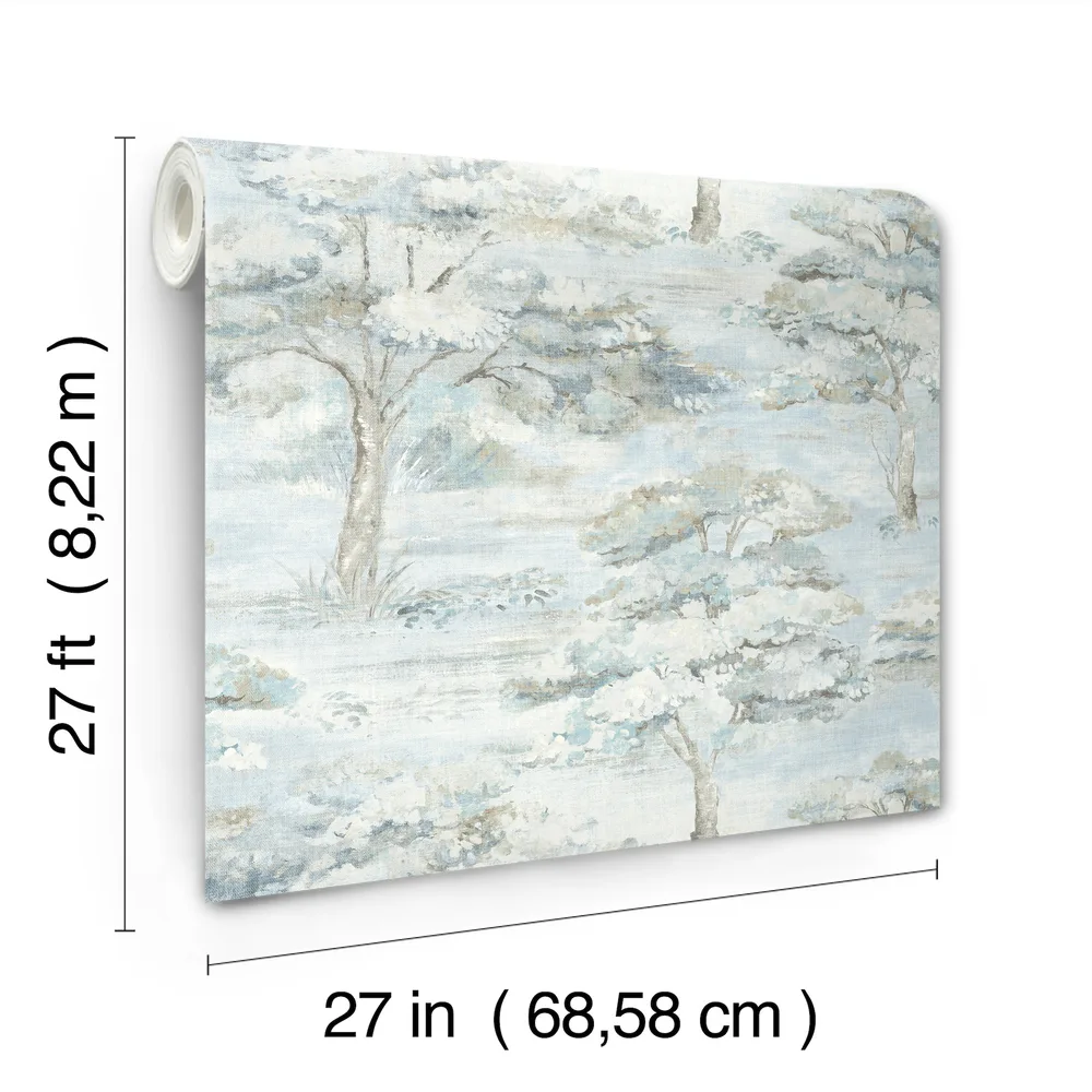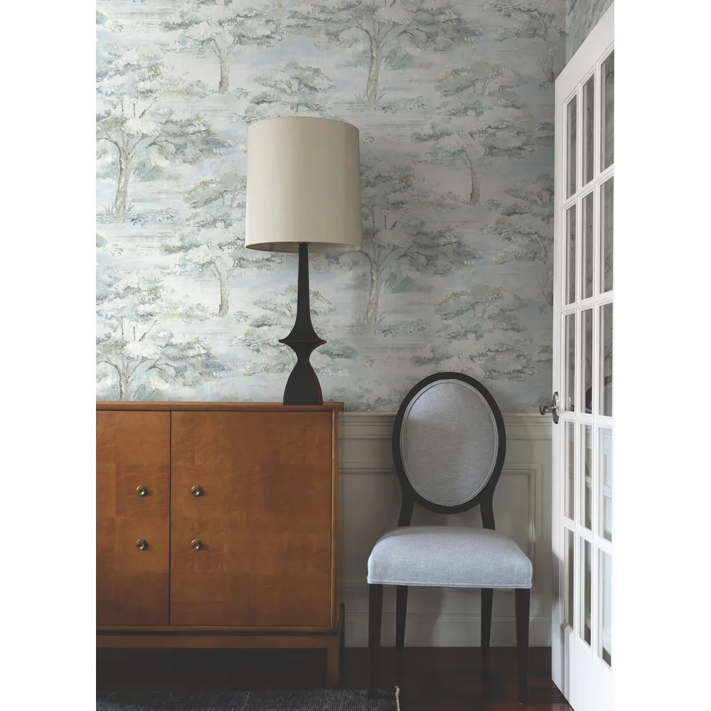 | Antonina Vella Layered Luxe | Moreno Blue Woodland Wallpaper Match: Drop Page: 33 Repeat: 24 Washable Roll is 27 Inches in width and 27 Feet in Length With About 60.8 square feet Coverage Unpasted Strippable Paste the Wall Colors: Blues Traditional Botanical Woods & Forests |