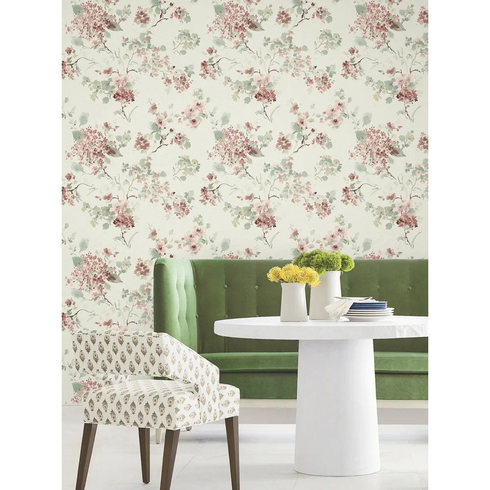 | Antonina Vella Layered Luxe | Veiled Garden Rose Floral Wallpaper Match: Drop Page: 55 Repeat: 24 Washable Roll is 27 Inches in width and 27 Feet in Length With About 60.8 square feet Coverage Unpasted Strippable Paste the Wall Colors: Reds Traditional Flowers Botanical |
