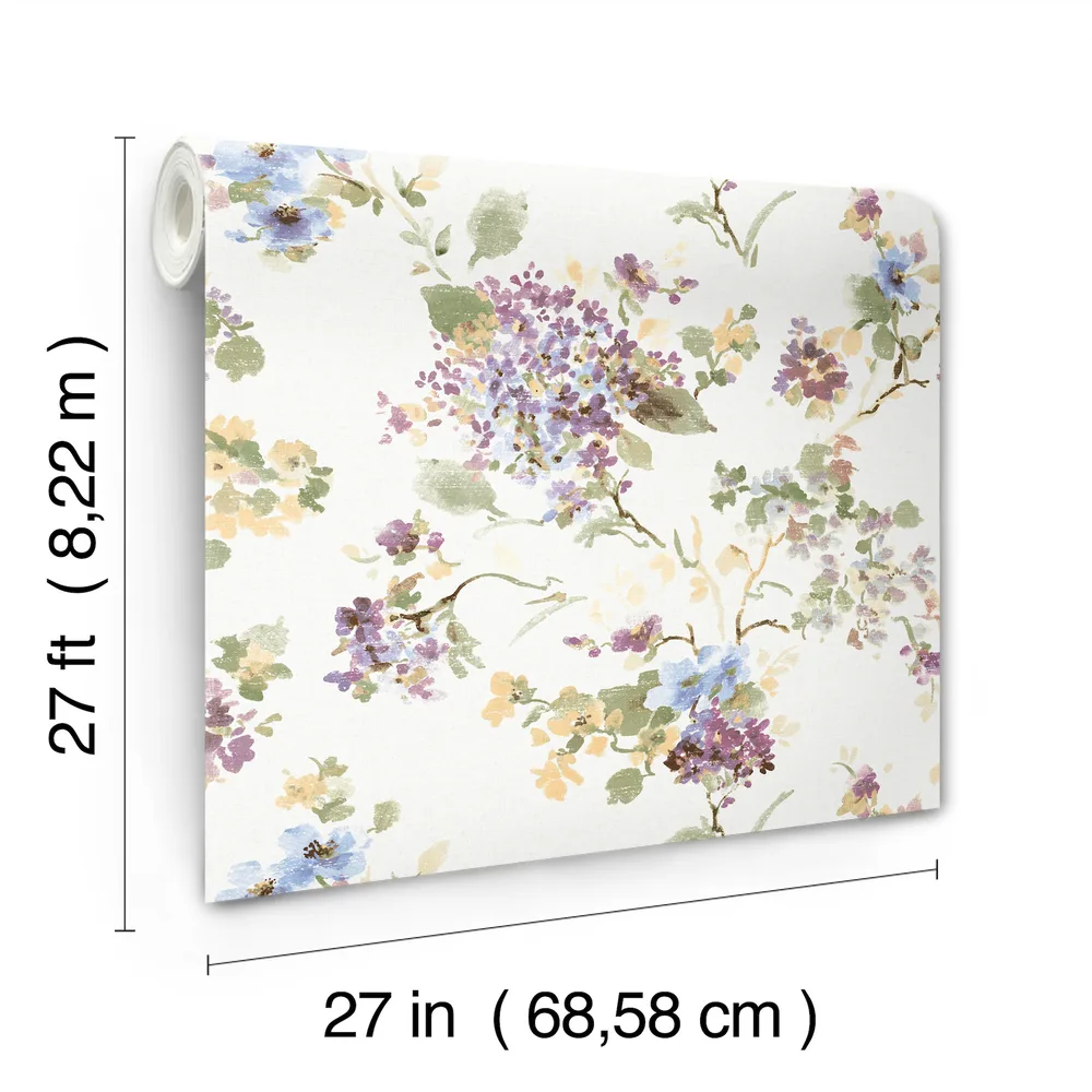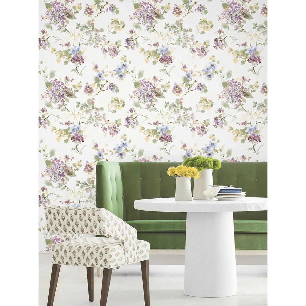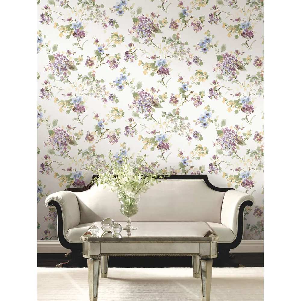 | Antonina Vella Layered Luxe | Veiled Garden Plum Floral Wallpaper Match: Drop Page: 54 Repeat: 24 Washable Roll is 27 Inches in width and 27 Feet in Length With About 60.8 square feet Coverage Unpasted Strippable Paste the Wall Colors: Purples Traditional Flowers Botanical |