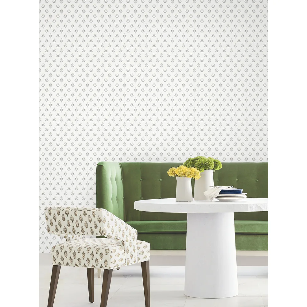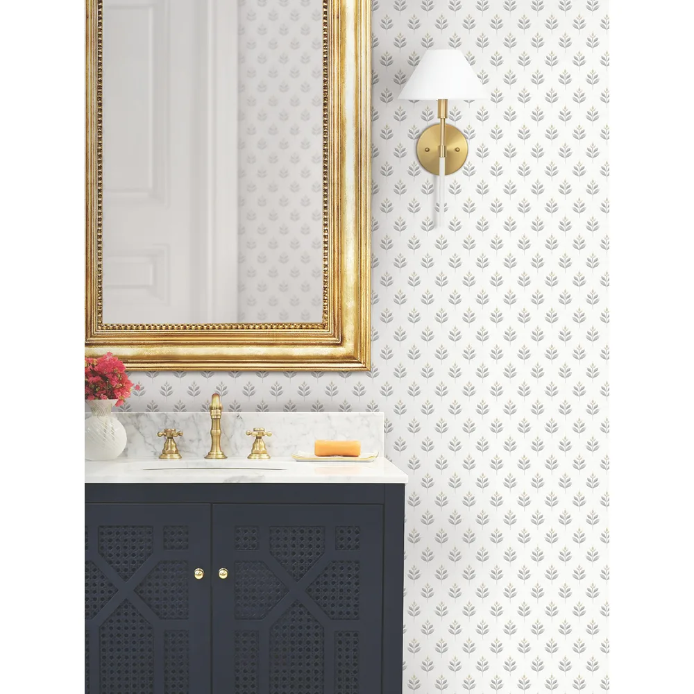 | Antonina Vella Layered Luxe | Serene Villa Stone Floral Stamp Wallpaper Match: Straight Page: 59 Repeat: 24 Washable Roll is 27 Inches in width and 27 Feet in Length With About 60.8 square feet Coverage Unpasted Strippable Paste the Wall Colors: Neutrals Traditional Flowers Botanical |