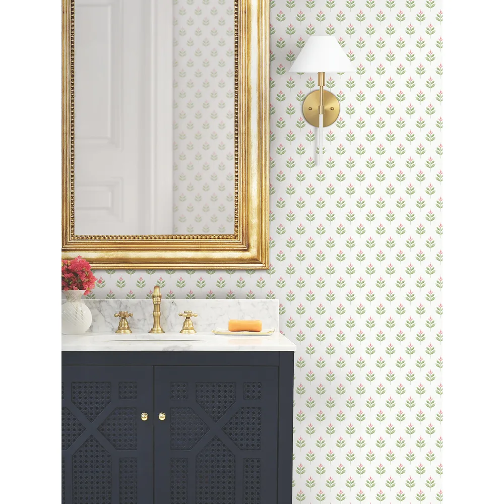 Antonina Vella Layered Luxe | Serene Villa Pink Floral Stamp Wallpaper