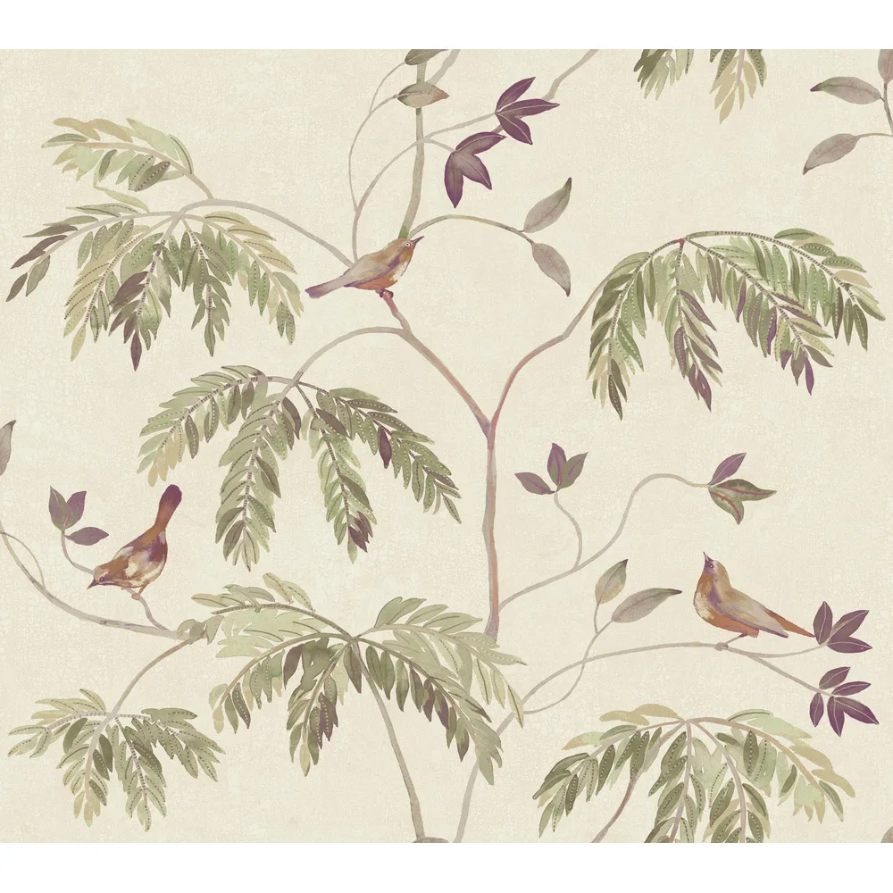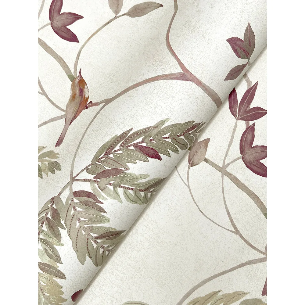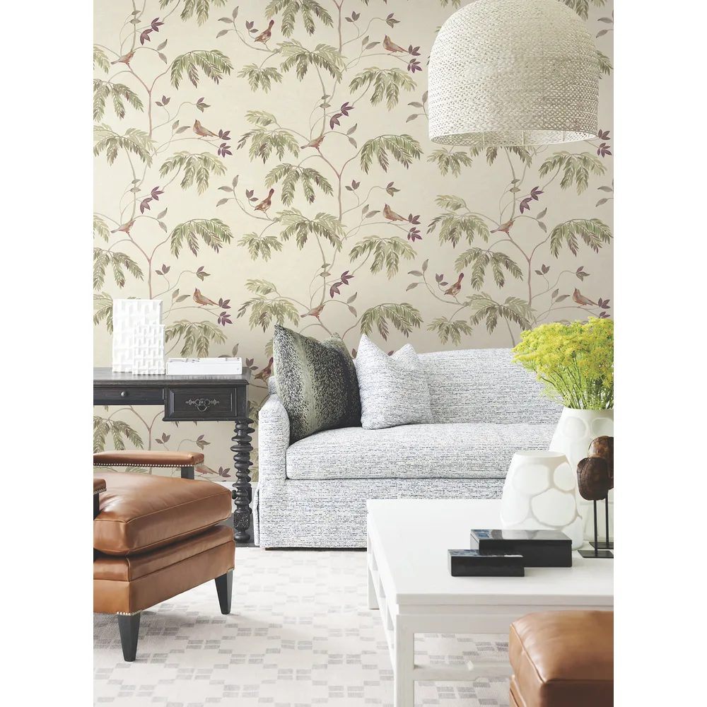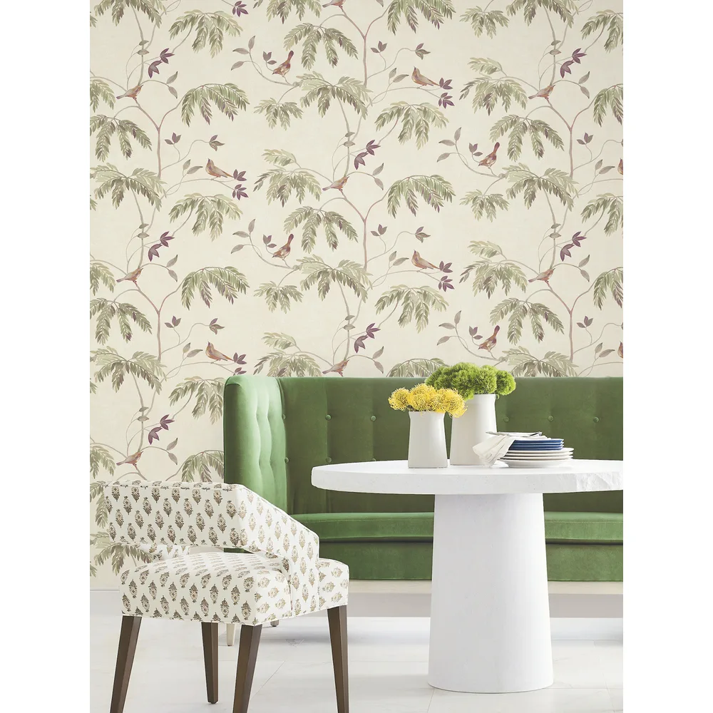 | Antonina Vella Layered Luxe | Cillian Plum Botanical Bird Trail Wallpaper Match: Drop Page: 35 Repeat: 24 Washable Roll is 27 Inches in width and 27 Feet in Length With About 60.8 square feet Coverage Unpasted Strippable Paste the Wall Colors: Purples Traditional Animals Animals |