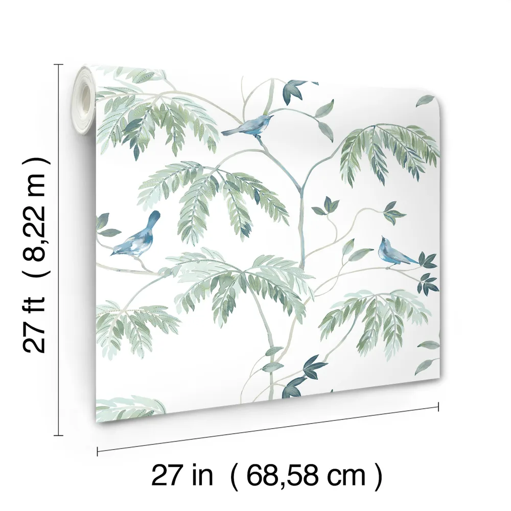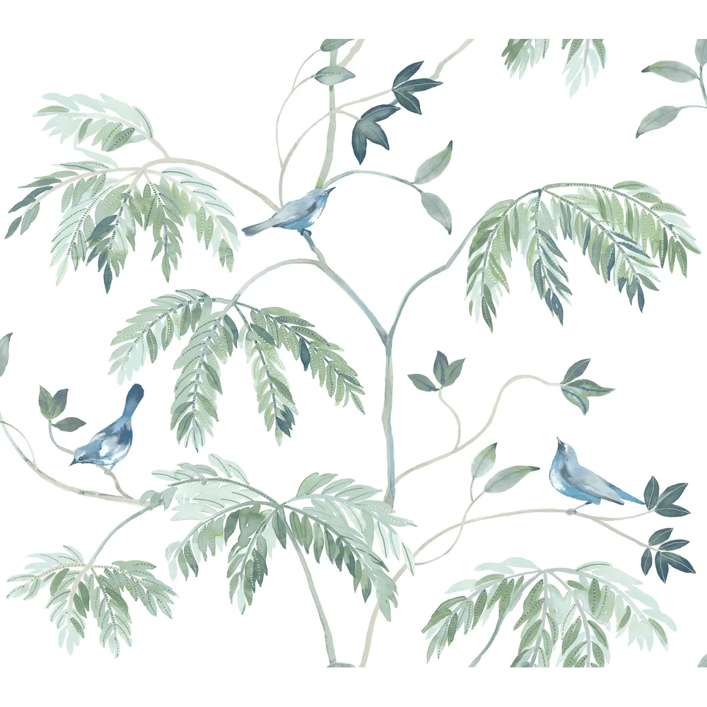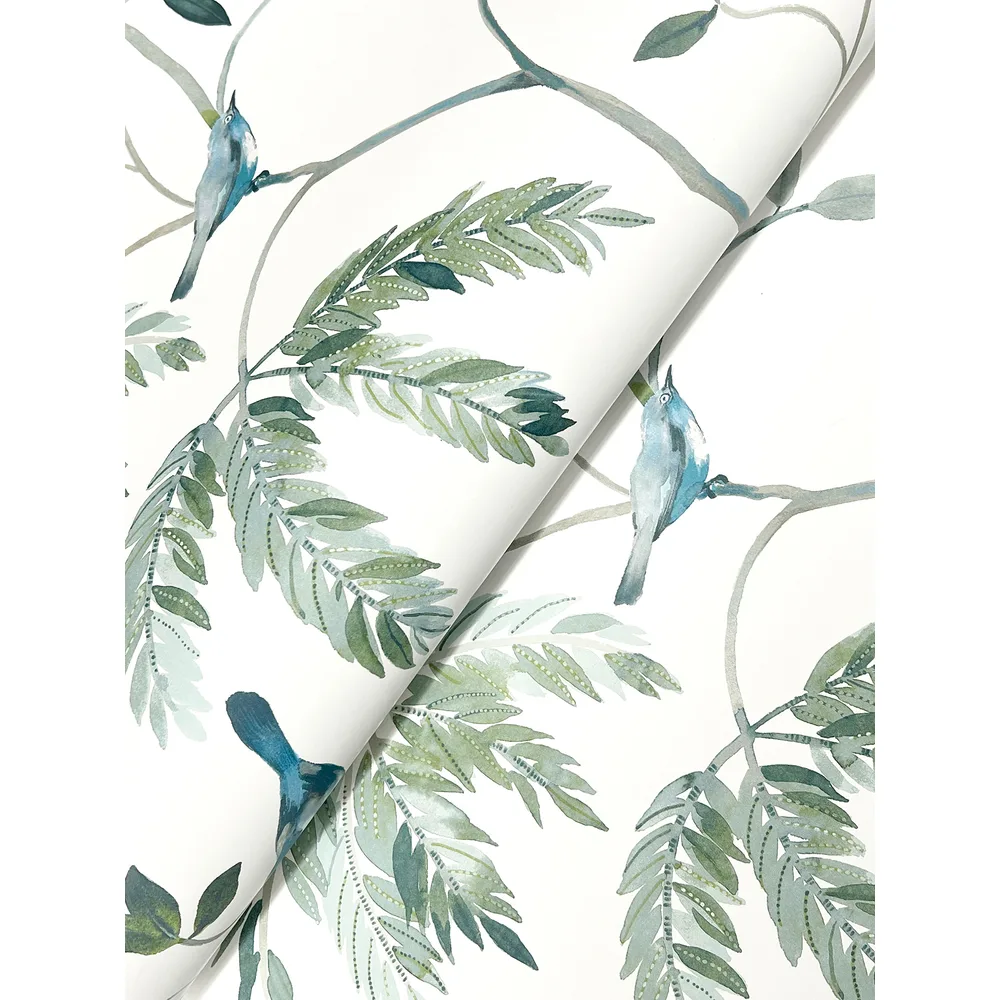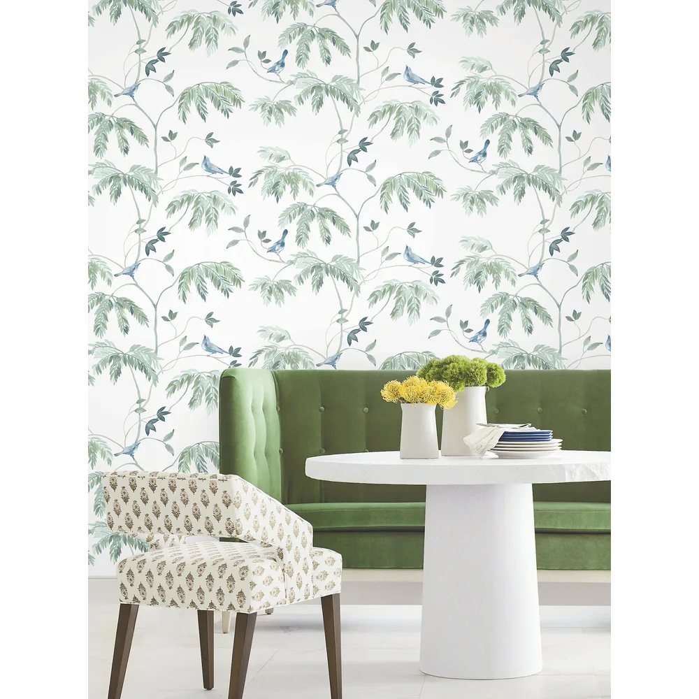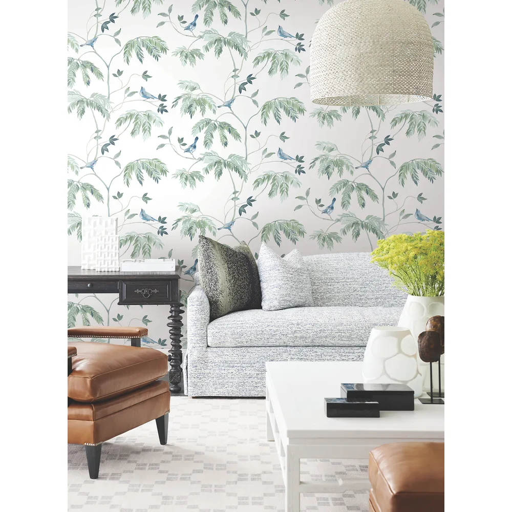 Antonina Vella Layered Luxe | Cillian Blue Botanical Bird Trail Wallpaper