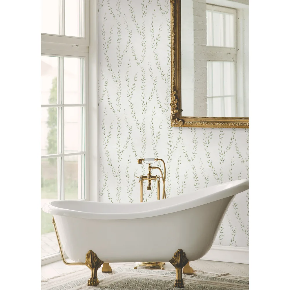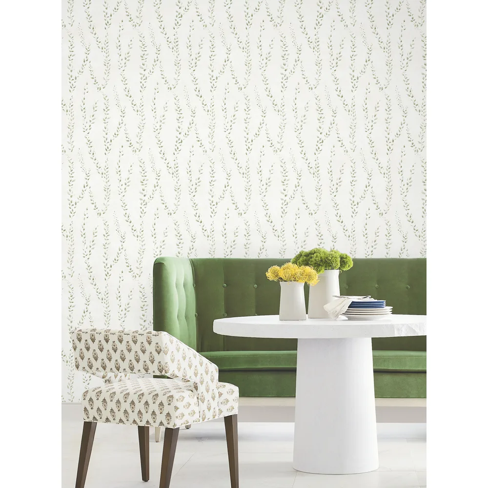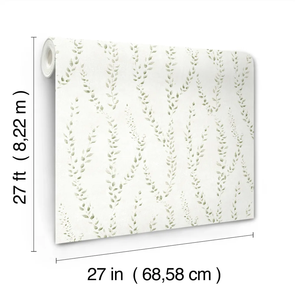 | Antonina Vella Layered Luxe | Alpenrose Moss Vine Wallpaper Match: Straight Page: 39 Repeat: 24 Washable Roll is 27 Inches in width and 27 Feet in Length With About 60.8 square feet Coverage Unpasted Strippable Paste the Wall Colors: Greens Traditional Botanical Botanical |