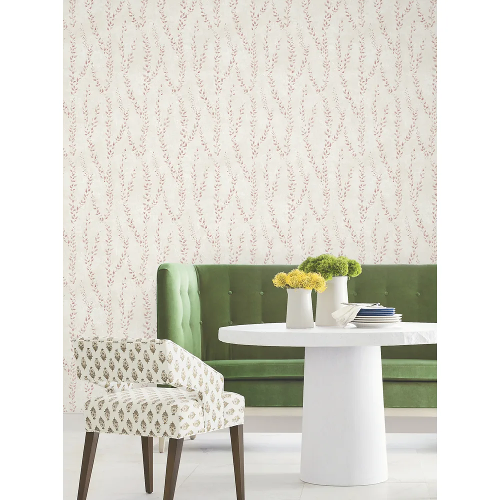 | Antonina Vella Layered Luxe | Alpenrose Maroon Vine Wallpaper Match: Straight Page: 42 Repeat: 24 Washable Roll is 27 Inches in width and 27 Feet in Length With About 60.8 square feet Coverage Unpasted Strippable Paste the Wall Colors: Reds Traditional Botanical Botanical |