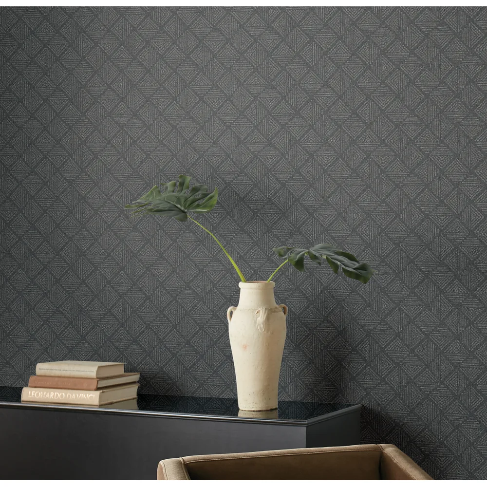 | Magnolia Home Magnolia Home High Performance | Center Square Charcoal Wallpaper Match: Straight Page: 36 Repeat: 6.4 Scrubbable Roll is 54 Inches in width and 90 Feet in Length With About 405 square feet Coverage Unpasted Strippable Paste the Paper Colors: Greys Modern Geometrics |