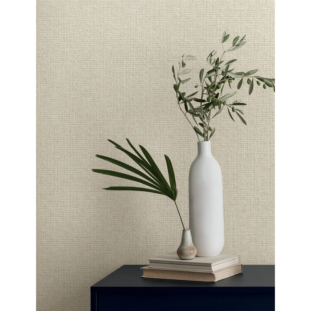 | Magnolia Home Magnolia Home High Performance | Brindled Linen Wallpaper Match: Random Reverse Page: 66 Repeat: 0 Scrubbable Roll is 27 Inches in width and 27 Feet in Length With About 60.8 square feet Coverage Unpasted Strippable Paste the Paper Colors: Beiges Transitional Textures |