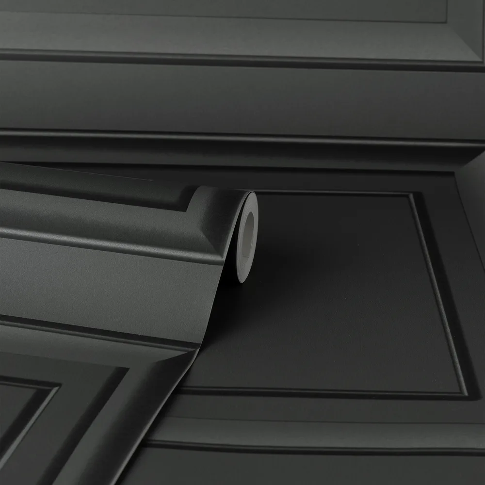 | Fine Decor Medley | Distinctive Dark Grey Square Panel Wallpaper Match: Straight Repeat: 20.9 Washable Roll is 20.5 Inches in width and 33 Feet in Length With About 56.4 square feet Coverage Unpasted Strippable Paste the Paper Colors: Blacks Traditional Wood Graphics |