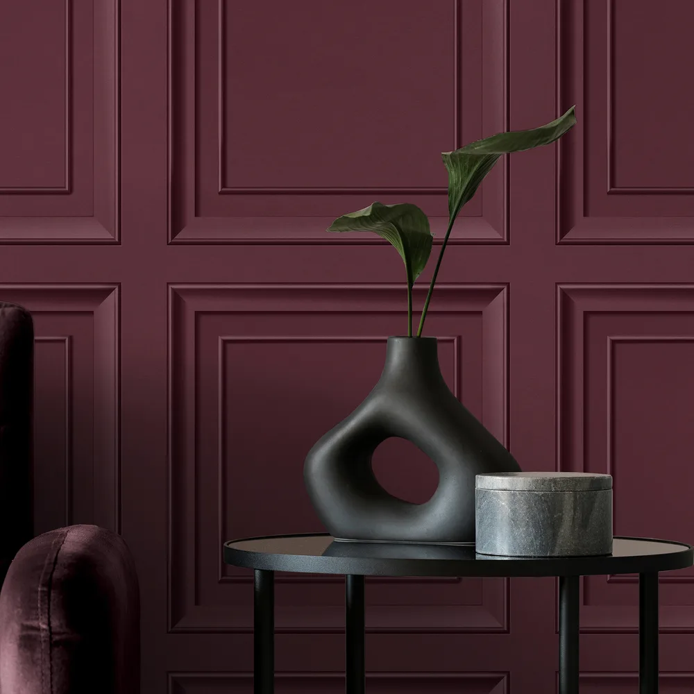 | Fine Decor Medley | Distinctive Merlot Square Panel Wallpaper Match: Straight Repeat: 20.9 Washable Roll is 20.5 Inches in width and 33 Feet in Length With About 56.4 square feet Coverage Unpasted Peelable Paste the Paper Colors: Reds Traditional Wood Graphics |