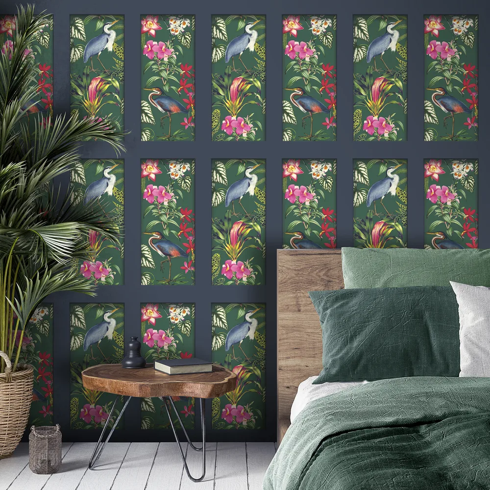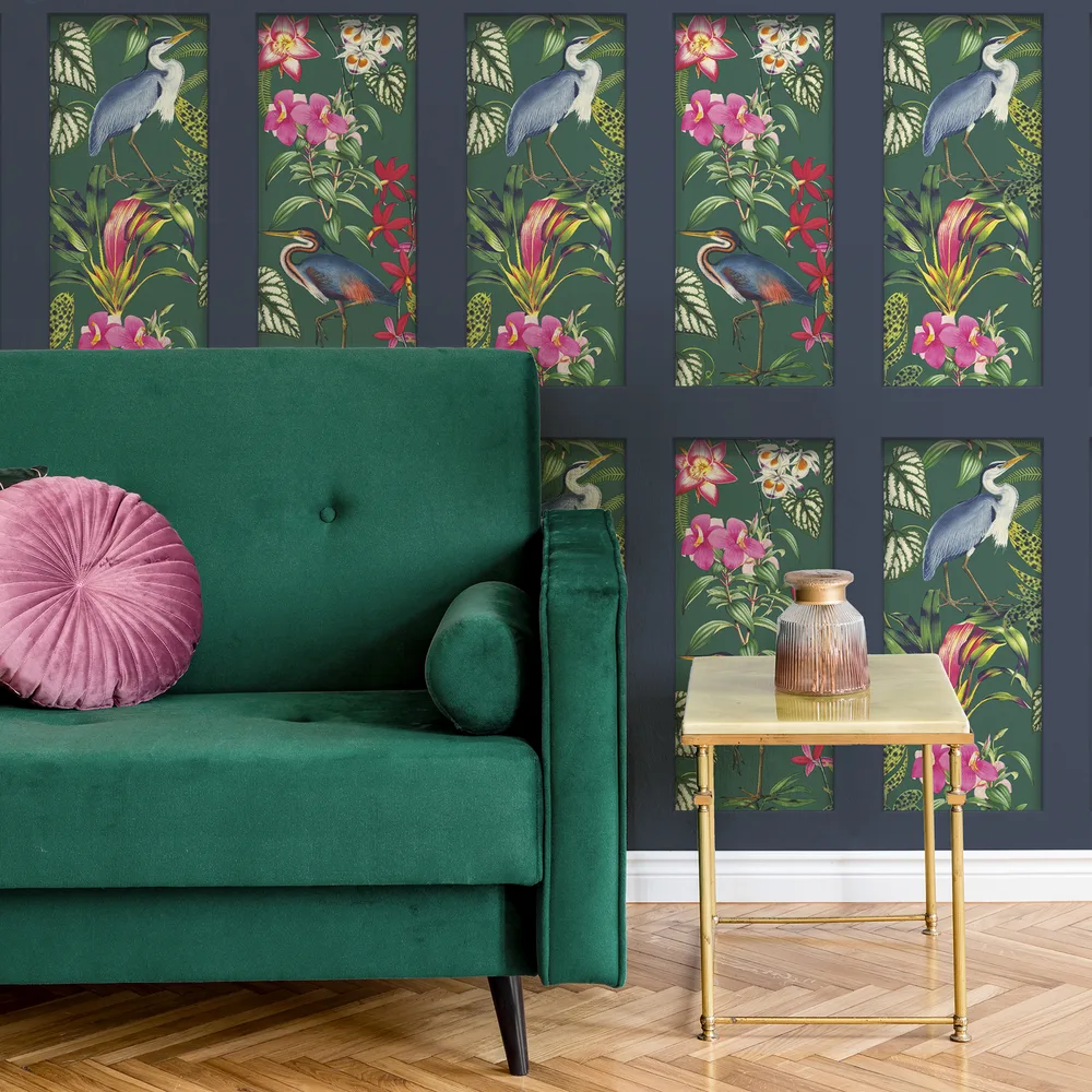 Fine Decor Medley | Silas Dark Blue Tropical Panel Wallpaper