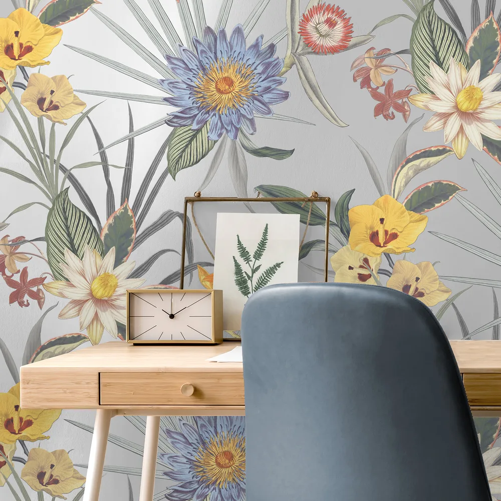 Fine Decor Medley | Calista Light Blue Tropical Floral Wallpaper
