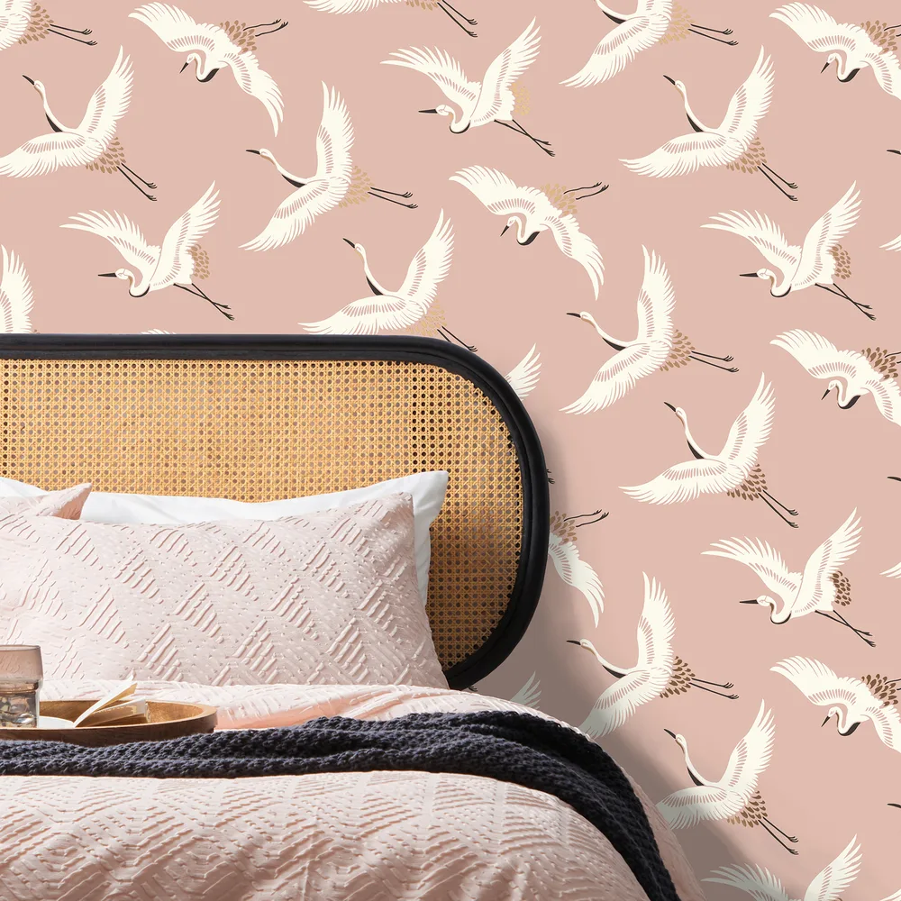 | Fine Decor Medley | Cosette Blush Cranes Wallpaper Match: Drop Repeat: 20.9 Washable Roll is 20.5 Inches in width and 33 Feet in Length With About 56.4 square feet Coverage Unpasted Peelable Paste the Paper Colors: Pinks Bohemian Birds Animals |