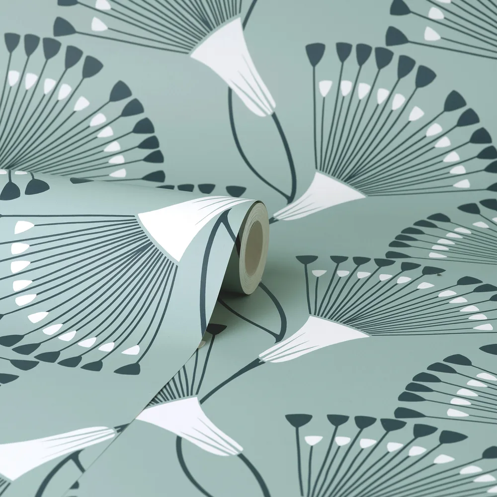 | Fine Decor Medley | Wilder Light Blue Fanning Flower Wallpaper Match: Straight Repeat: 20.9 Washable Roll is 20.5 Inches in width and 33 Feet in Length With About 56.4 square feet Coverage Unpasted Peelable Paste the Paper Colors: Blues Bohemian Flowers Botanical |