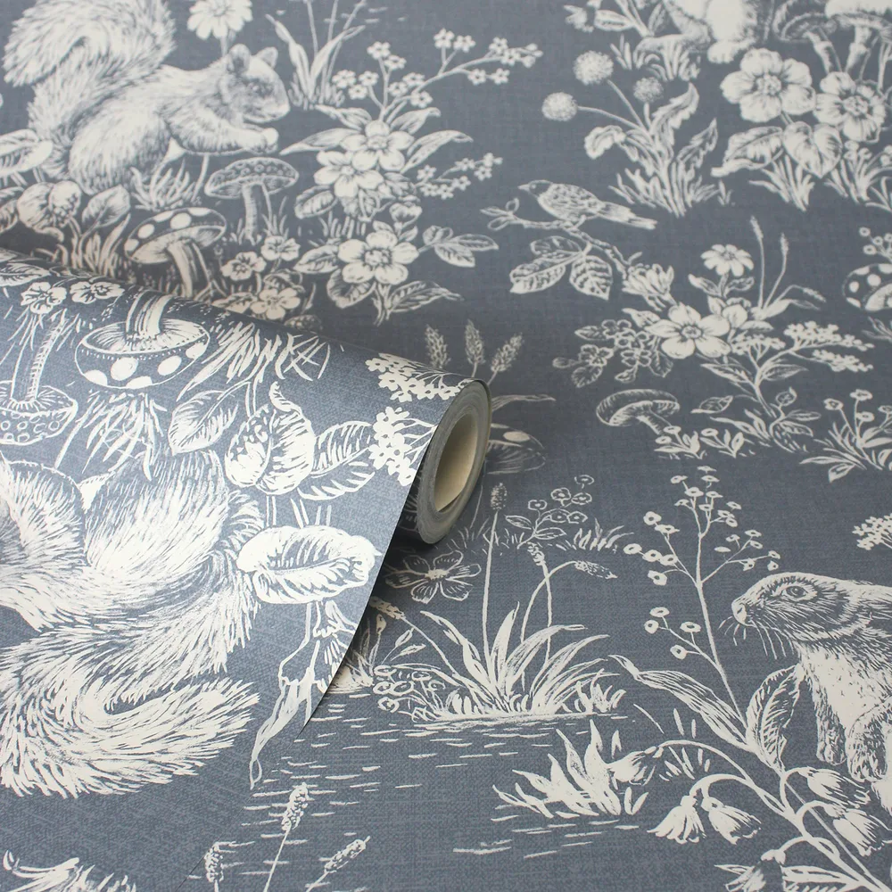 | Fine Decor Medley | Eames Blue Forest Friends Wallpaper Match: Drop Repeat: 20.9 Washable Roll is 20.5 Inches in width and 33 Feet in Length With About 56.4 square feet Coverage Unpasted Peelable Paste the Paper Colors: Blues Farmhouse Animals Animals |