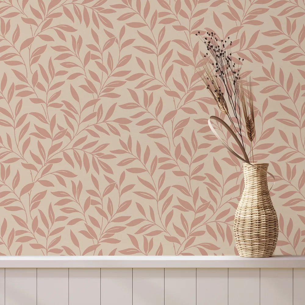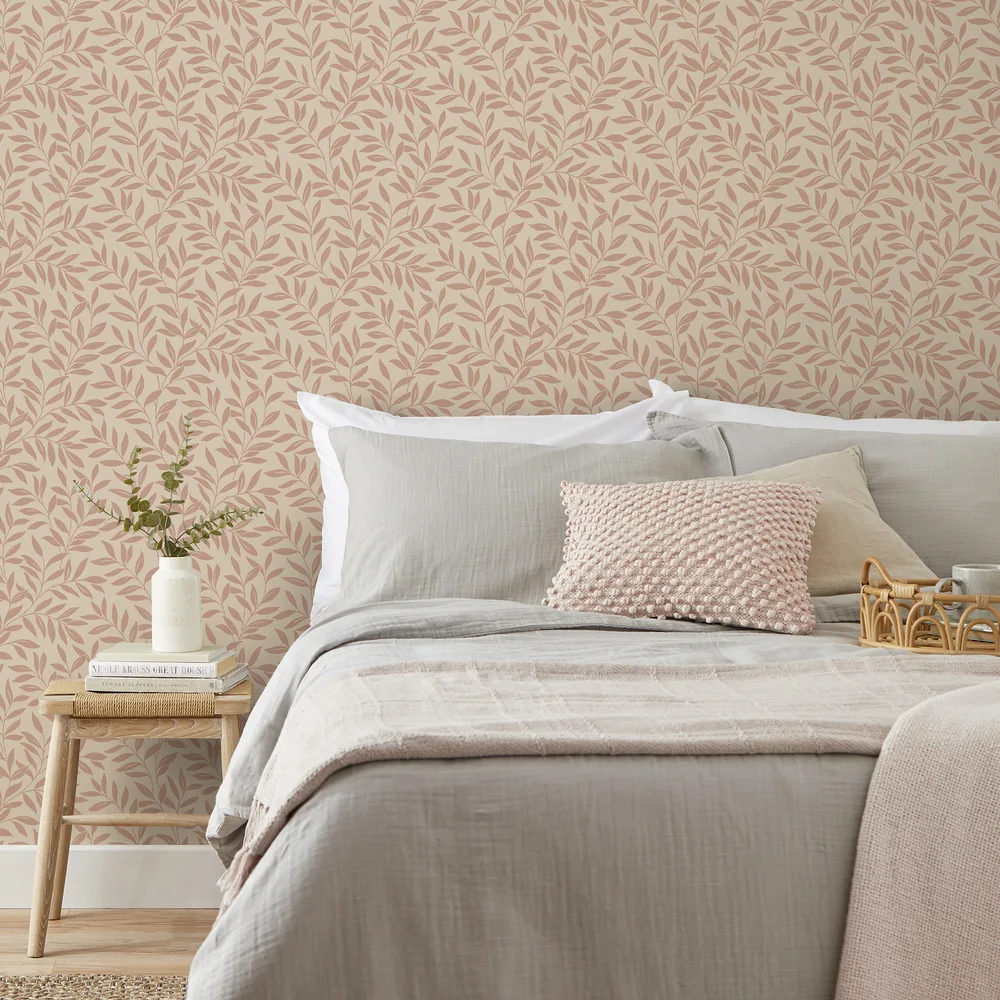 Fine Decor Medley | Marin Blush Leaf Trail Wallpaper