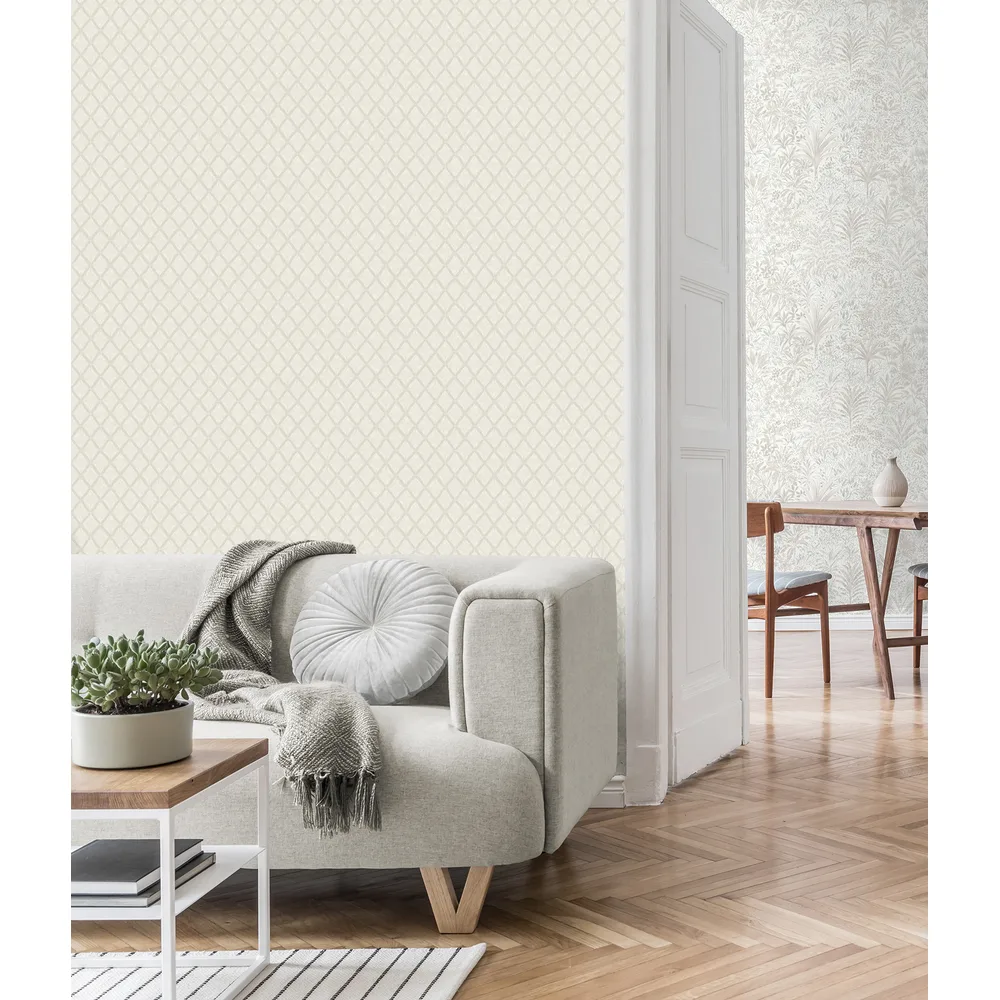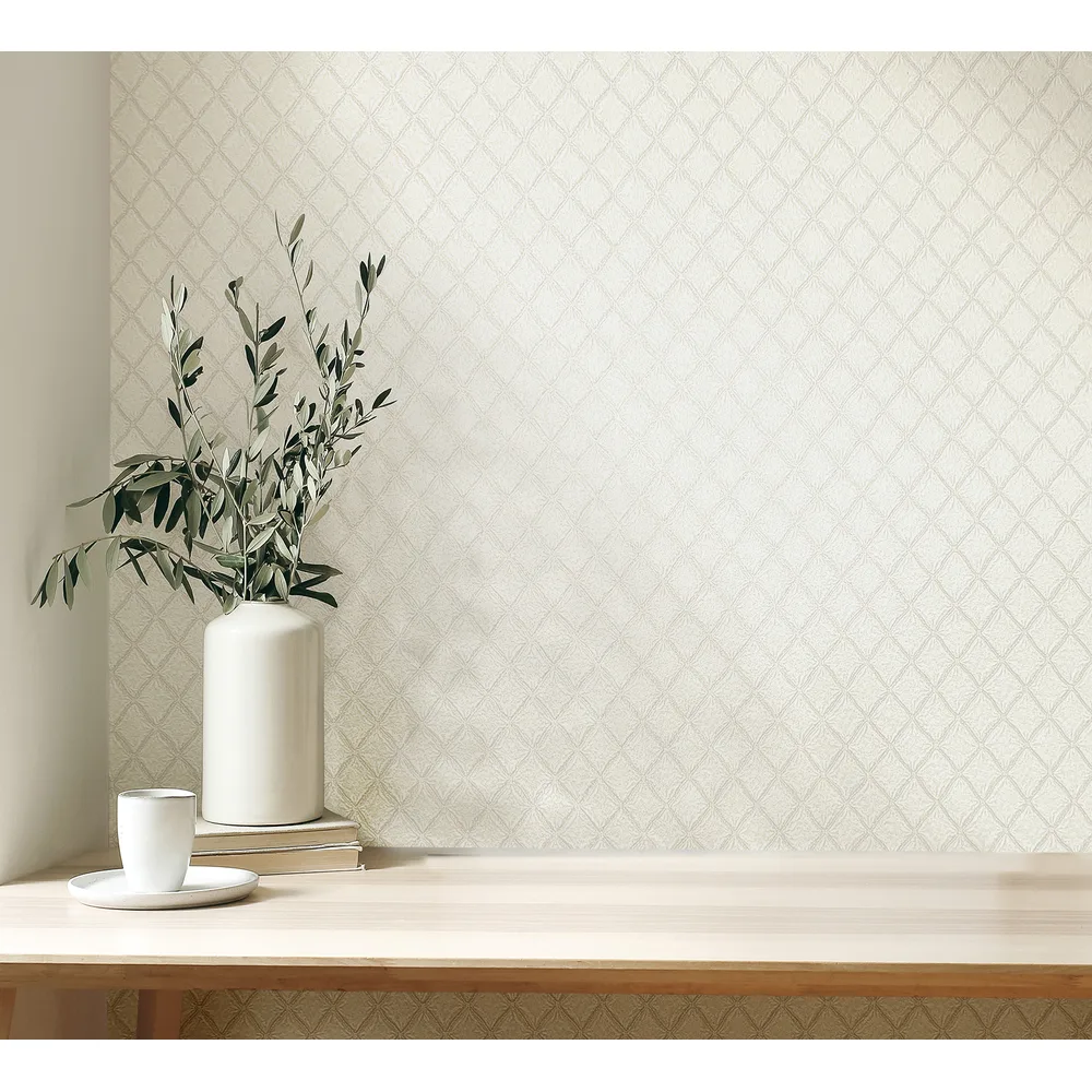 | Fine Decor Medley | Santina White & Silver Trellis Wallpaper Match: Straight Repeat: 1.8 Scrubbable Roll is 20.9 Inches in width and 33 Feet in Length With About 57.5 square feet Coverage Unpasted Peelable Paste the Paper Colors: Whites & Off-Whites Traditional Trellis Graphics |