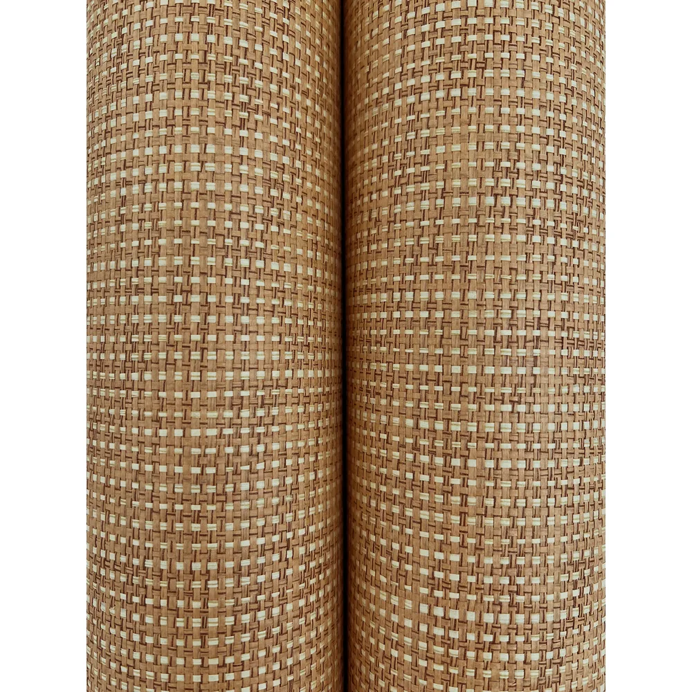 | Ronald Redding Natural Palette Resource | Check Paperweave Saddle Weave Wallpaper Match: Random Page: 30 Repeat: 0 Dust and Vacuum Roll is 36 Inches in width and 24 Feet in Length With About 72 square feet Coverage Unpasted Wet Removable Paste the Paper Colors: Oranges Naturals Paper Weave |