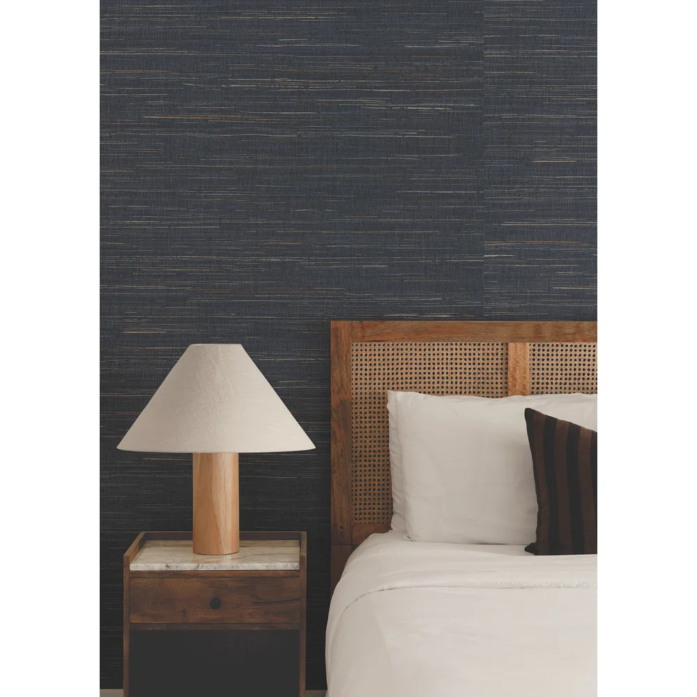 | Ronald Redding Natural Palette Resource | Multicolored Hemp Navy Wallpaper Match: Random Page: 2 Repeat: 0 Dust and Vacuum Roll is 36 Inches in width and 24 Feet in Length With About 72 square feet Coverage Unpasted Wet Removable Paste the Paper Colors: Blues Naturals Grasscloth |