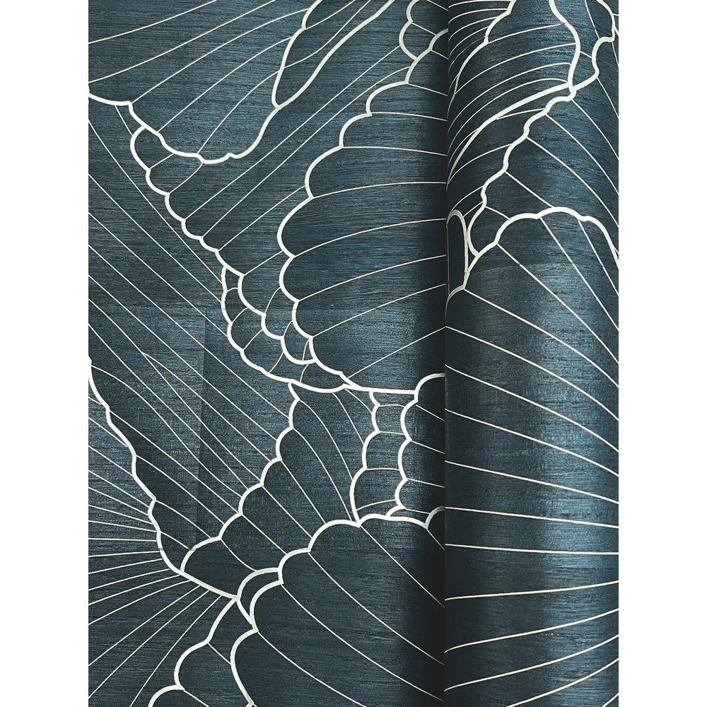 | Ronald Redding Natural Palette Resource | Shell Wood Veneer Navy Metallic Wallpaper Match: Drop Page: 1 Repeat: 0 Dust and Vacuum Roll is 35 Inches in width and 24 Feet in Length With About 70 square feet Coverage Unpasted Wet Removable Paste the Paper Colors: Blues Eclectic Wood Veneer |