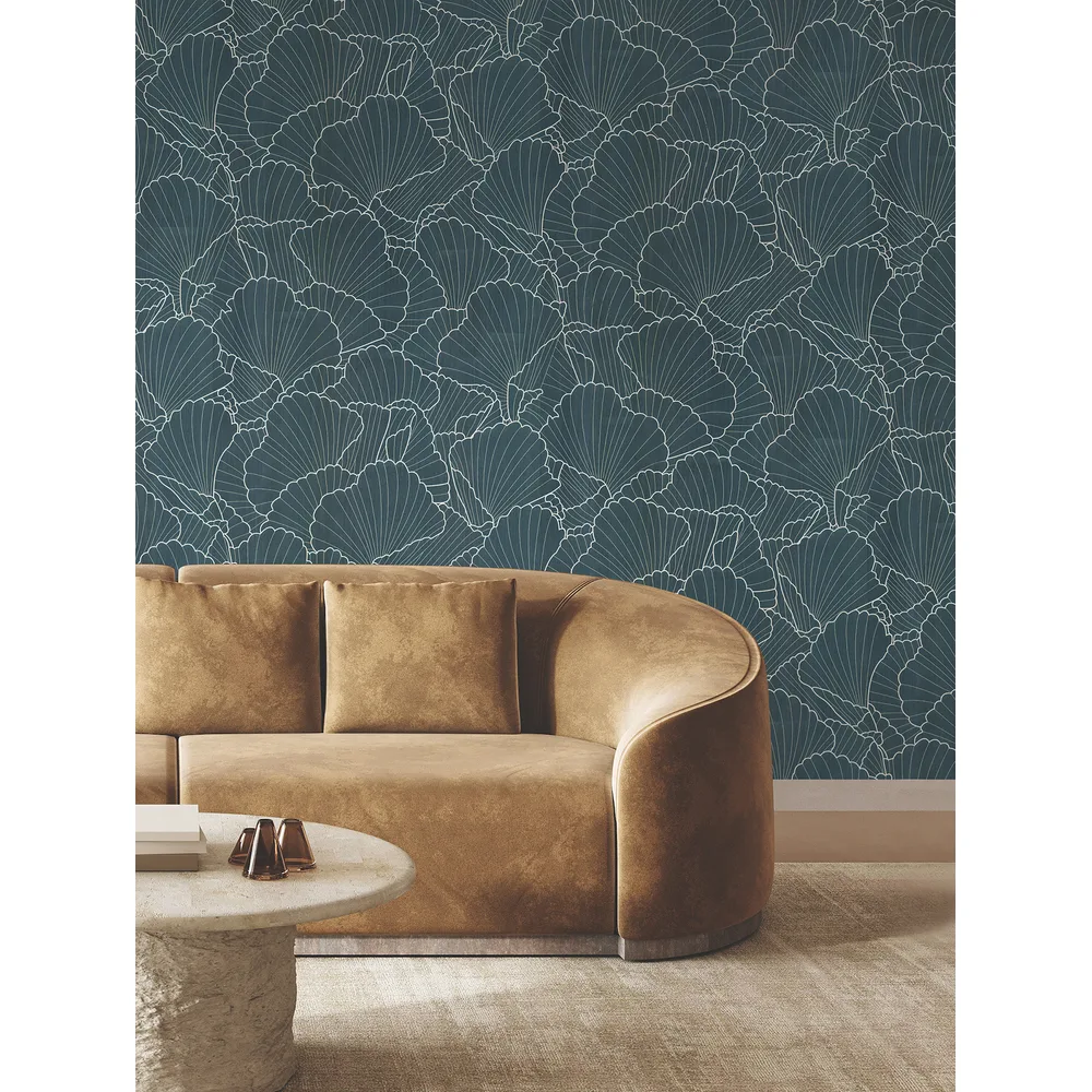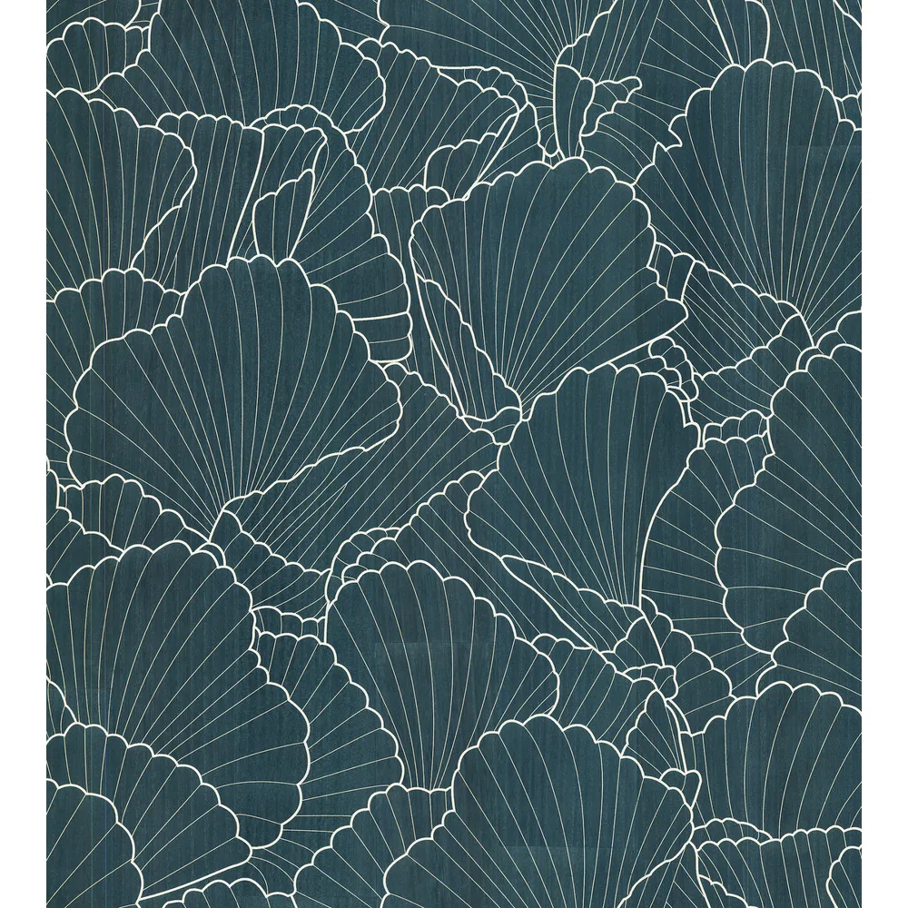 York Wallcovering Shell Wood Veneer Navy Metallic