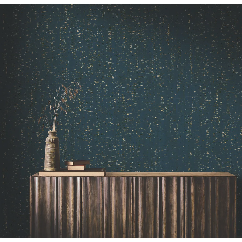 Ronald Redding Natural Palette Resource | Caldera Cork Navy / Gold Wallpaper