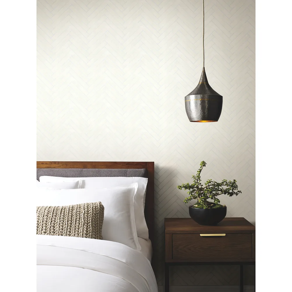 | Ronald Redding Natural Palette Resource | Herringbone Wood Veneer Apple Blossom Wallpaper Match: Straight Page: 8 Repeat: 0 Dust and Vacuum Roll is 35.8 Inches in width and 24 Feet in Length With About 71.6 square feet Coverage Unpasted Wet Removable Paste the Paper Colors: Whites & Off-Whites Masculine Wood Veneer |