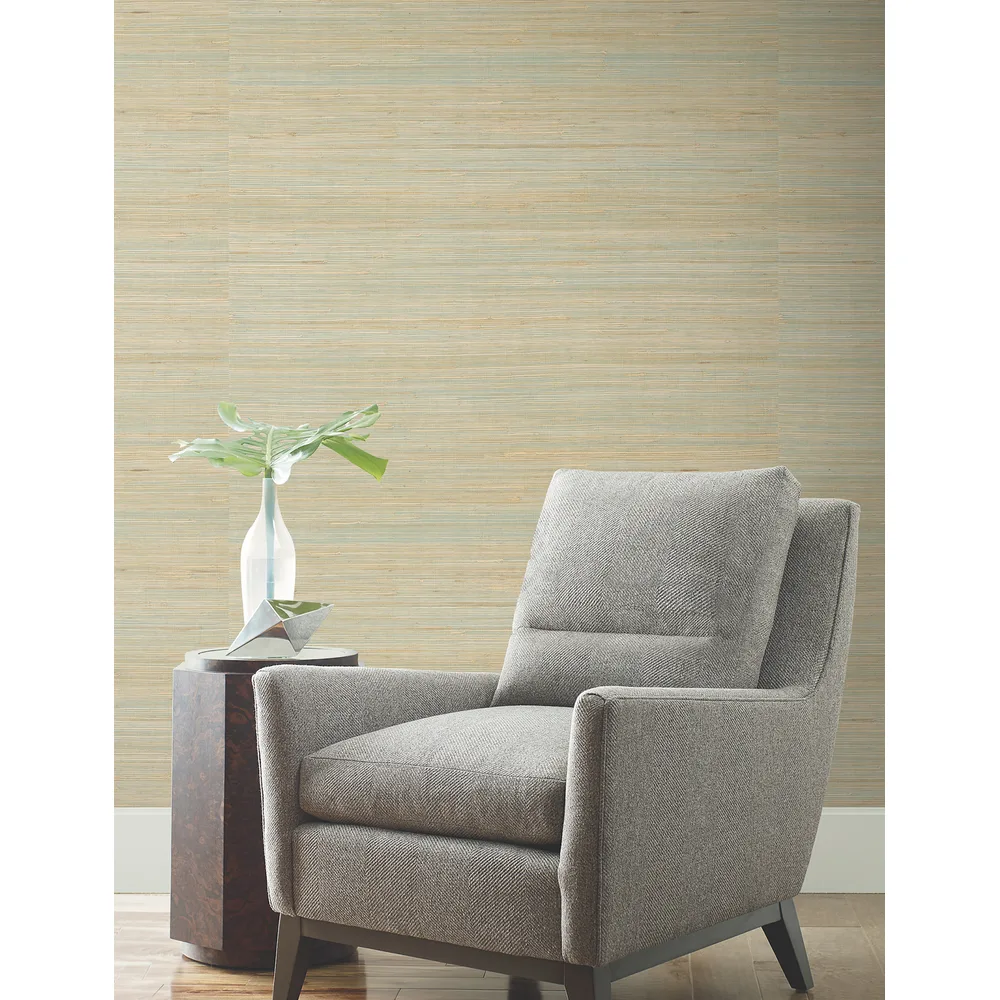 | Ronald Redding Natural Palette Resource | Horizontal Jute Seaglass Wallpaper Match: Random Page: 27 Repeat: 0 Dust and Vacuum Roll is 36 Inches in width and 24 Feet in Length With About 72 square feet Coverage Unpasted Wet Removable Paste the Paper Colors: Blues Naturals Grasscloth |