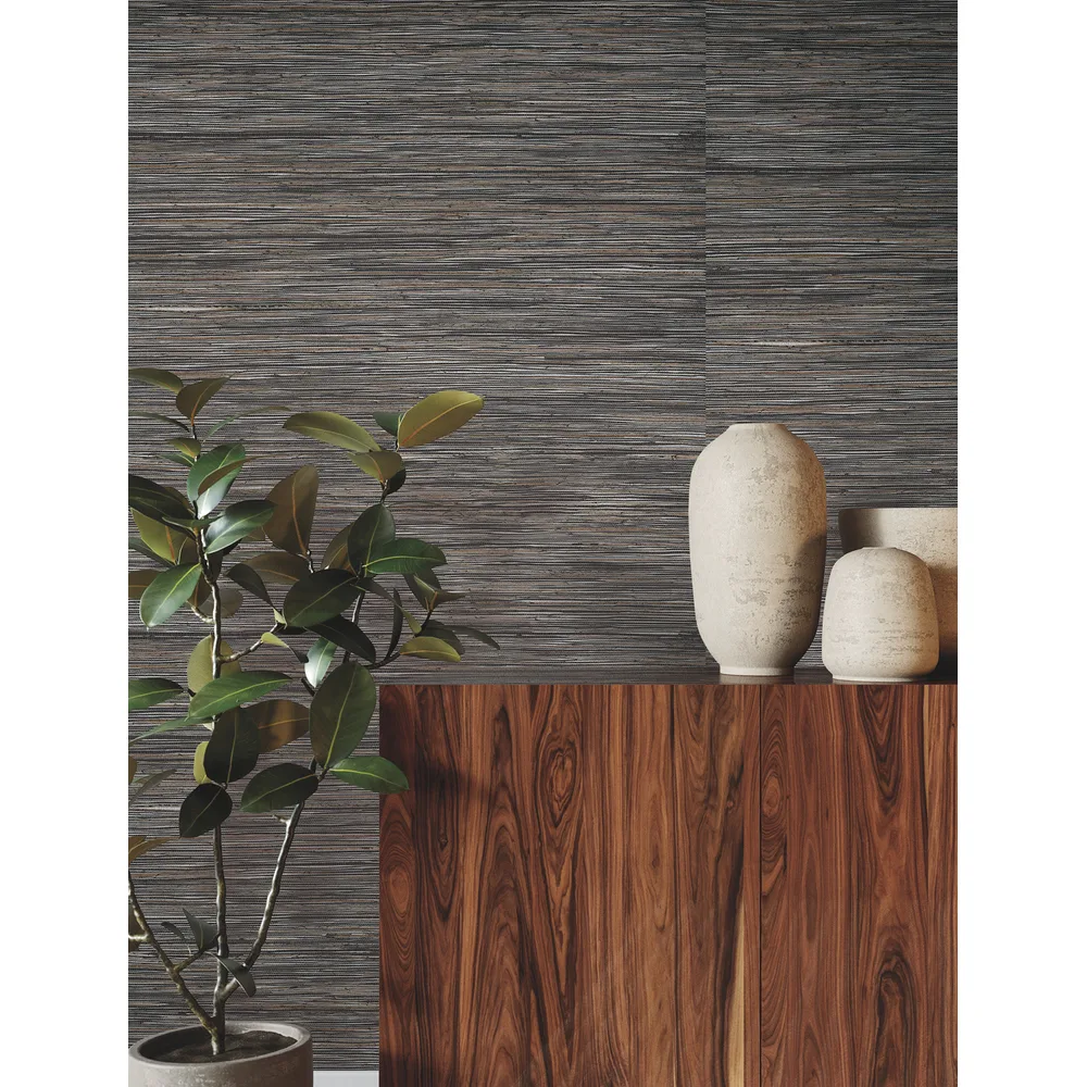 Ronald Redding Natural Palette Resource | Shimmering Hemp Black / Silver Wallpaper