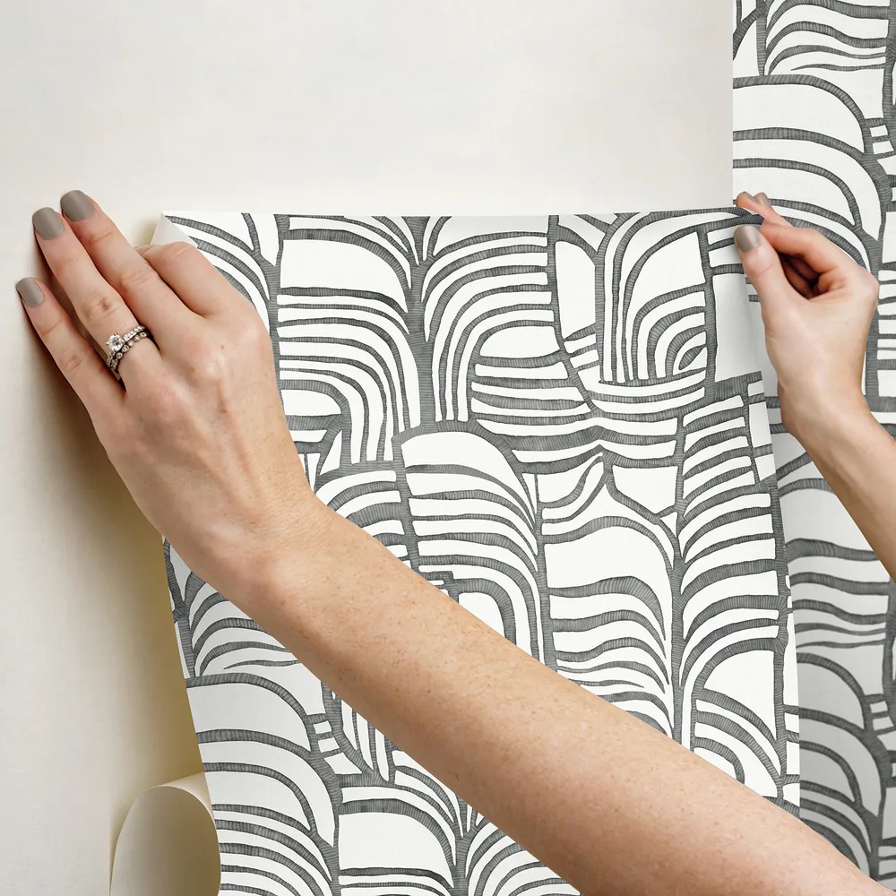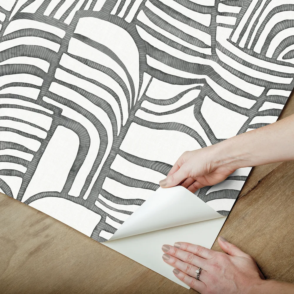 | York Wallcoverings Nikki Chu Premium Peel + Stick | Featherwork Black & White Premium Peel + Stick Wallpaper Match: Drop Repeat: 24 Washable Roll is 27 Inches in width and 20 Feet in Length With About 45 square feet Coverage Peel & Stick Strippable Peel & Stick Colors: Blacks Modern Bohemian |