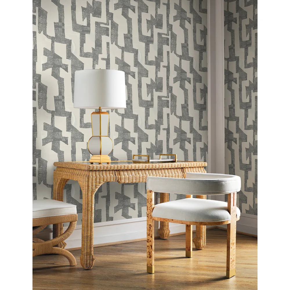 York Wallcoverings Nikki Chu Premium Peel + Stick | Tribe Black & Taupe Premium Peel + Stick Wallpaper