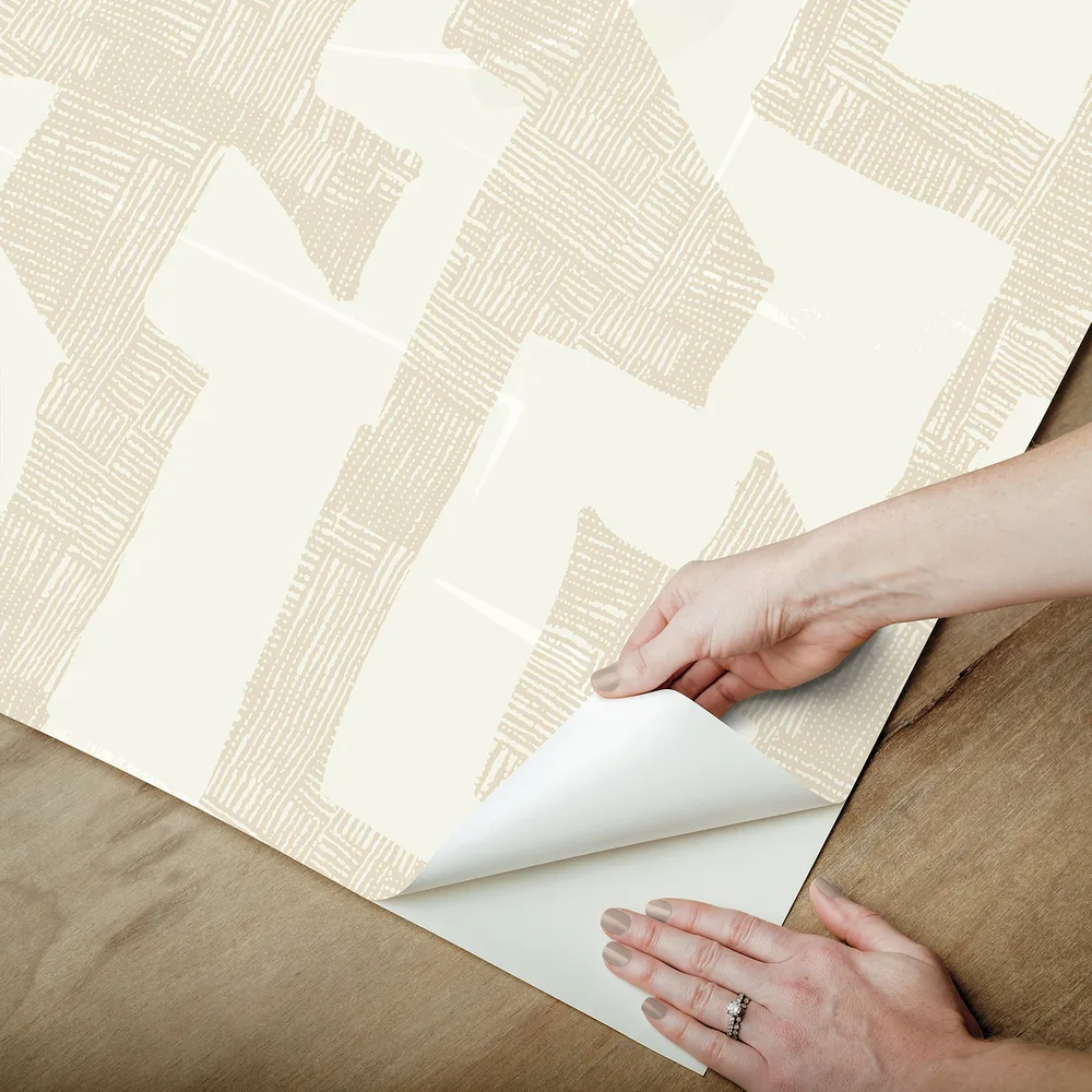 | York Wallcoverings Nikki Chu Premium Peel + Stick | Tribe Caramel Cream Premium Peel + Stick Wallpaper Match: Straight Repeat: 24 Washable Roll is 27 Inches in width and 20 Feet in Length With About 45 square feet Coverage Peel & Stick Strippable Peel & Stick Colors: Yellows Modern Geometrics |